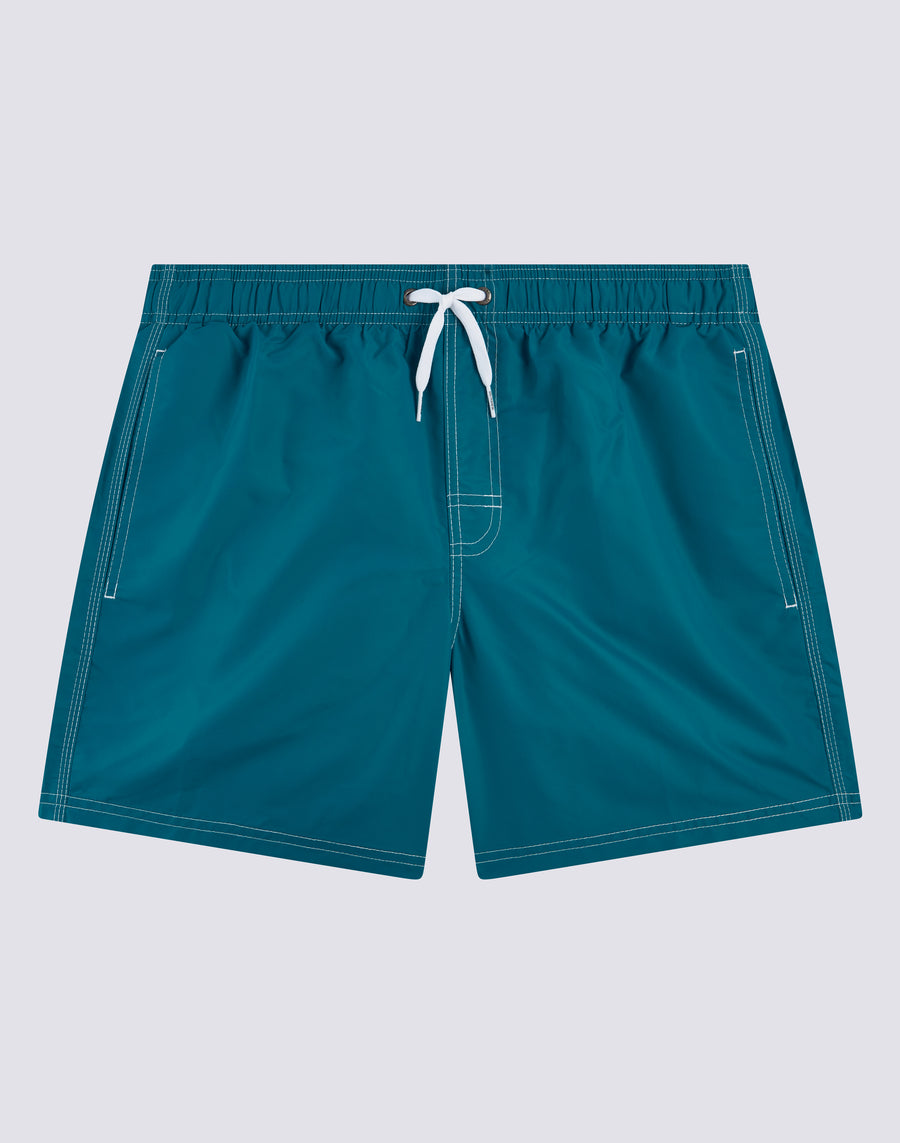 Shorts uomo mare corto e con vita elasticata, coulisse e iconico arcobaleno Sundek sul retro. Questo costume è realizzato con cuciture a tre aghi e al 100% con il nostro tessuto storico, il nylon-taffetà: liscio come la seta, leggero e resistente a tutto, si asciuga velocissimo per darti comodità ovunque, tra le onde e fuori dall'acqua. Lunghezza 35 cm (taglia M), misurati sul lato esterno della gamba.