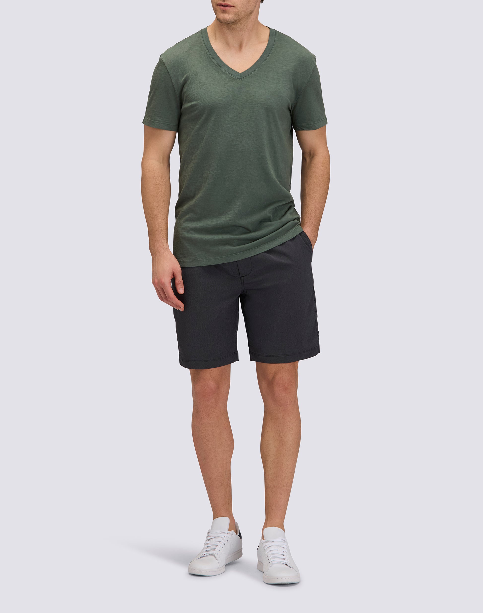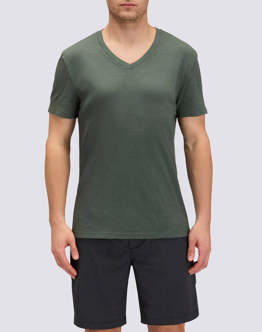 T-shirt a mezze maniche da uomo in tinto capo con scollo a V. Vestibilità regular per un comfort ottimale.