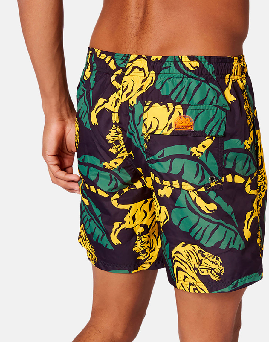 COSTUME DA BAGNO LUNGHEZZA MEDIA VITA ELASTICATA STAMPA TIGRE