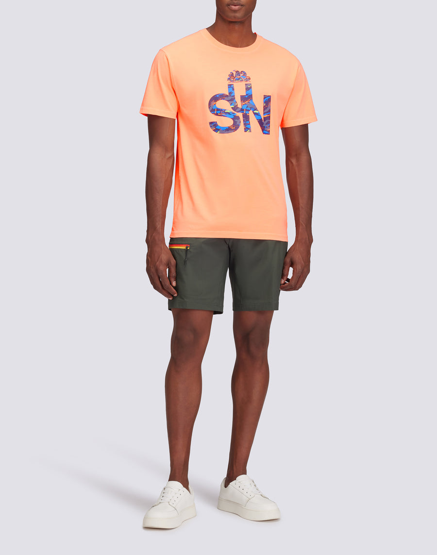 Aggiungi un tocco al tuo look con la nostra t-shirt da uomo a mezza manica. Realizzata in morbido cotone e arricchita dalla scritta SUNDEK in camouflage, questa t-shirt è perfetta per outfit casual ma sempre alla moda.