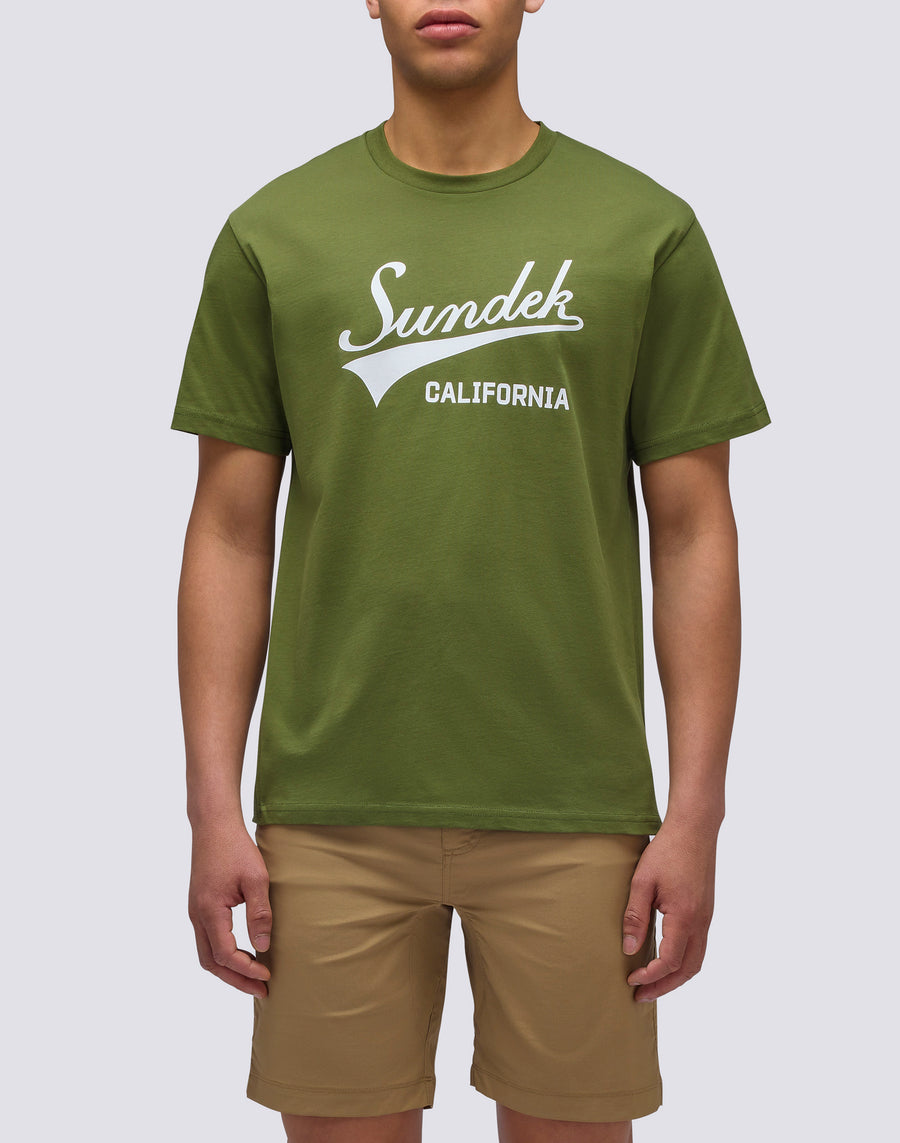 Aggiungi un tocco vivace al tuo look con la nostra t-shirt da uomo a mezza manica. Realizzata in morbido cotone e arricchita dalla scritta SUNDEK CALIFORNIA sul davanti, questa t-shirt è perfetta per outfit casual ma sempre alla moda.