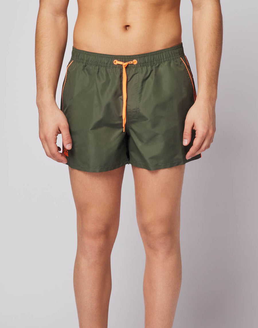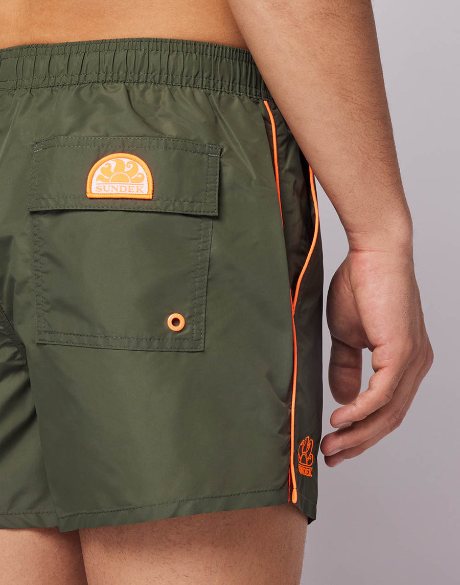 Costume da bagno corto Coltrane con vita elasticata e piping a contrasto sulla parte anteriore. Il costume è dotato di coulisse e tasca posteriore con chiusura a velcro, oltre che di cuciture triple sulle aree di maggiore stress per garantire una resistenza ottimale. Lunghezza sull'esterno gamba 13"/33 cm (in taglia M).