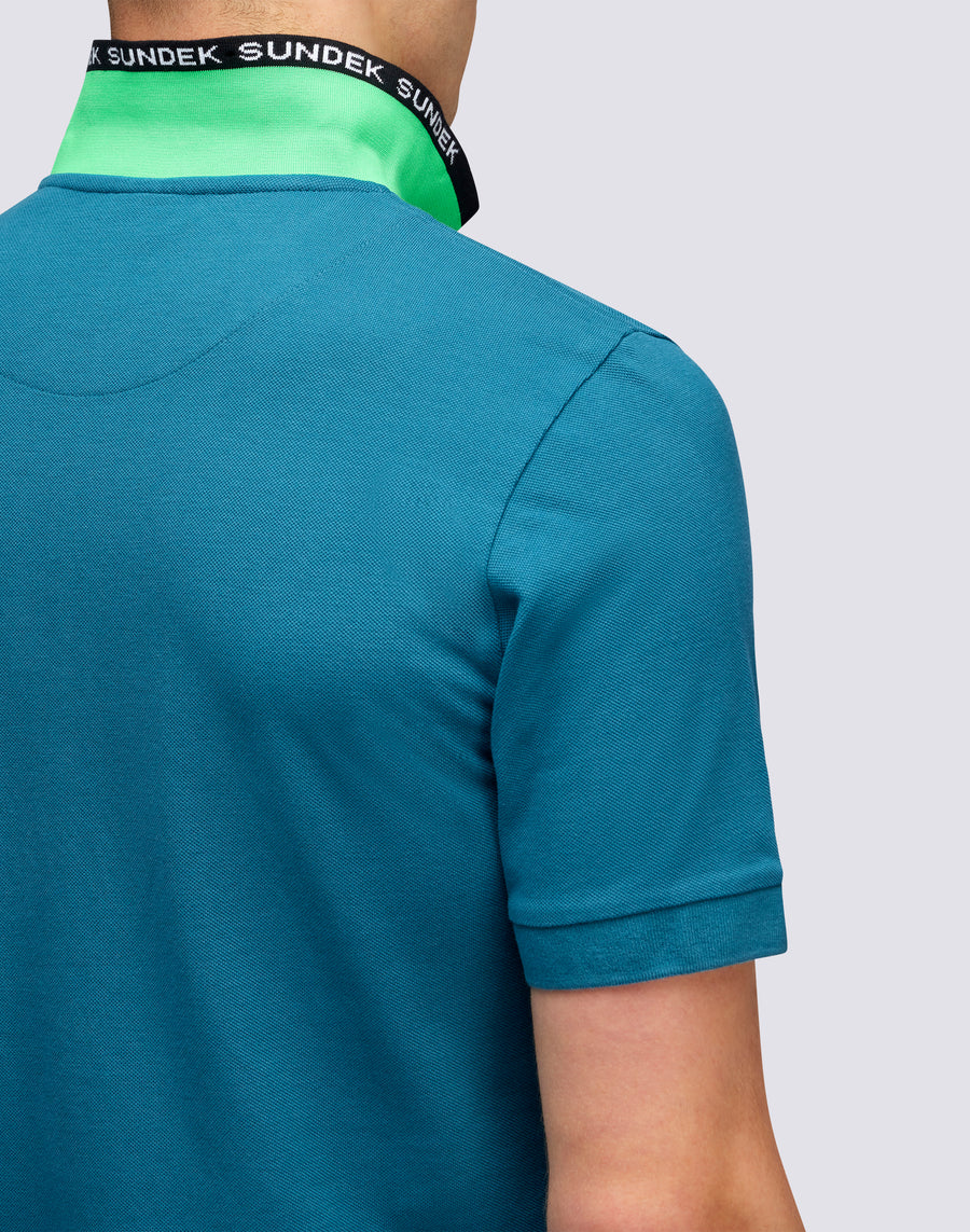 Tessuto confortevole e design originale per questa polo versatile realizzata in morbido cotone piquet. Da indossare anche con il colletto alzato per mostrare il blocco di colore e il logo Sundek. Scegli il comfort per ogni occasione.