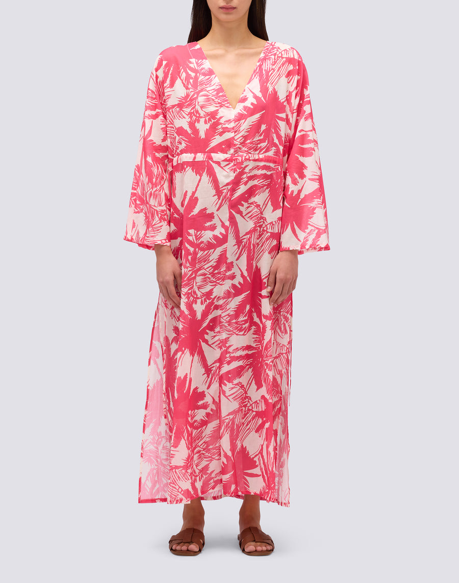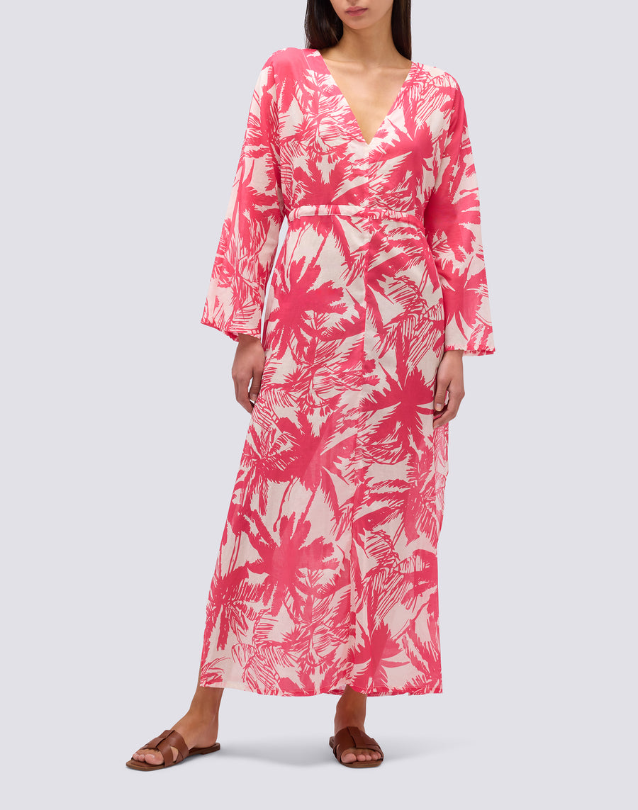 ABITO LUNGO IN COTONE VOILE CON STAMPA TROPIC SAVANA