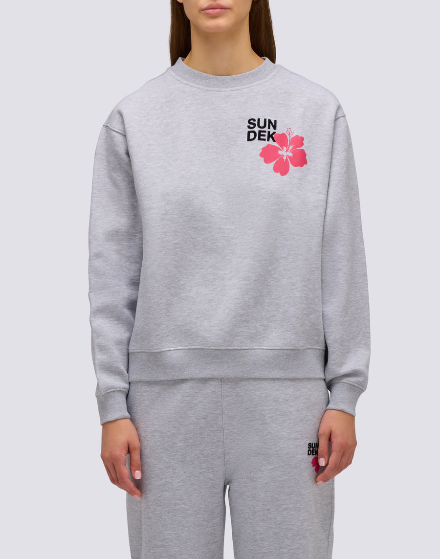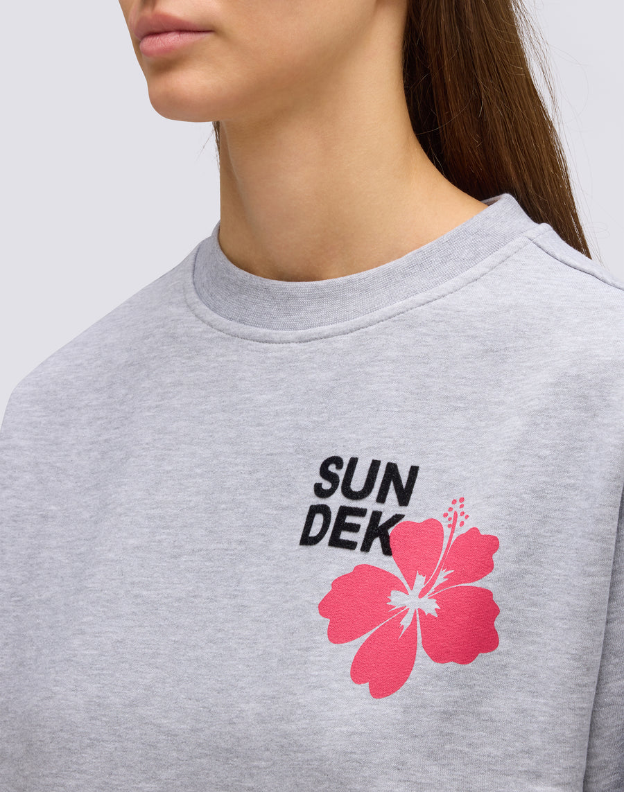 Questa felpa invernale da donna a girocollo offre calore e comfort durante le giornate fredde. Il design è impreziosito dalla scritta SUNDEK stampata e da un delicato dettaglio floreale, che rendono il capo versatile e femminile, ideale per uno stile casual ma curato.