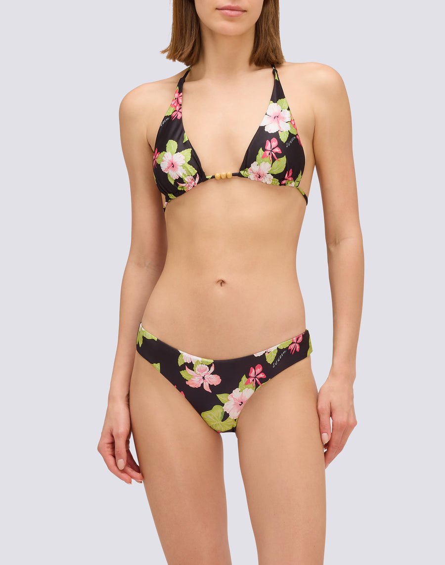 Top a triangolo americano Garbo in stampa Dreamy Hawaii, con perline in legno a decorare i lacci. Imbottitura removibile e vestibilità regular. Slip coordinato venduto separatamente.