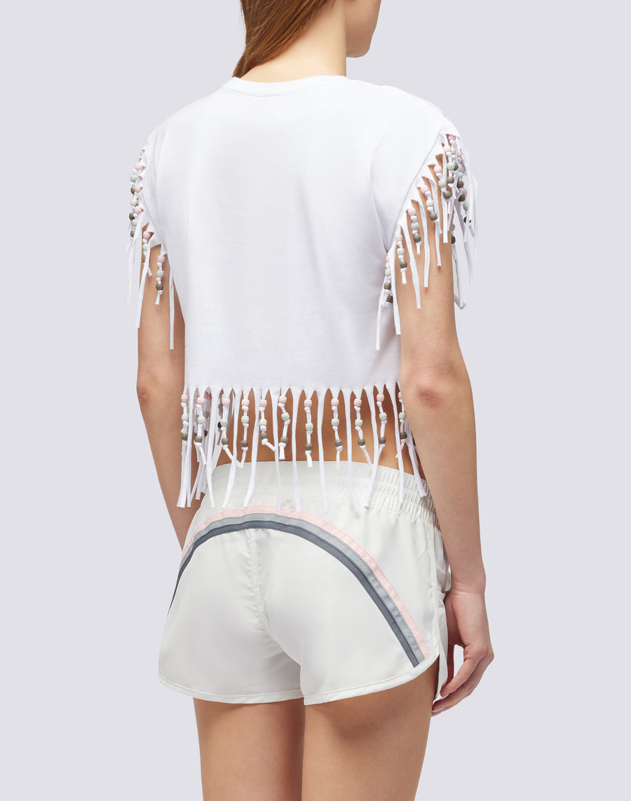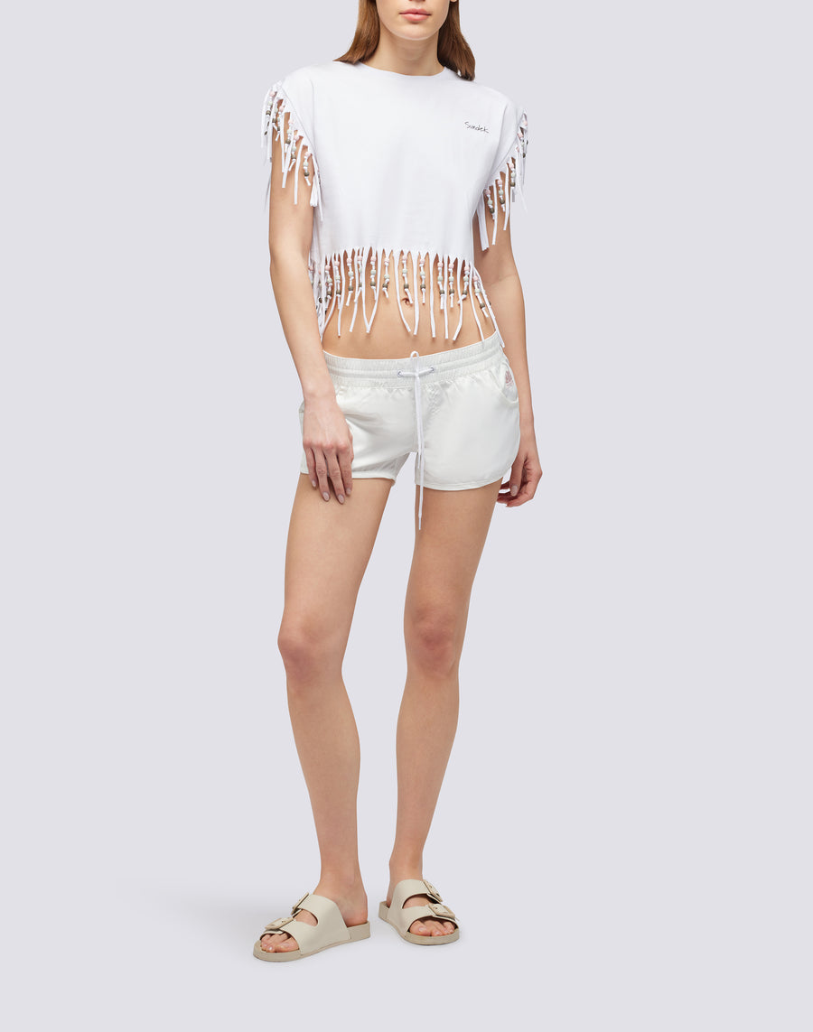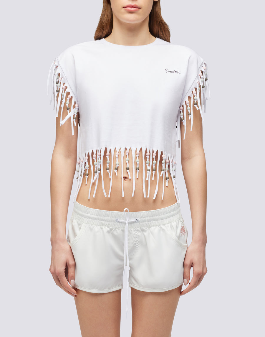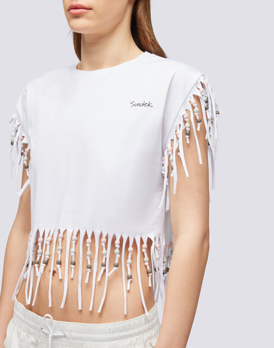 Perfetta per chi ama un look da spiaggia super informale, questa canotta donna con frange è il capo ideale per le giornate estive. Versatile e di tendenza, è ideale se abbinata sopra un bikini.