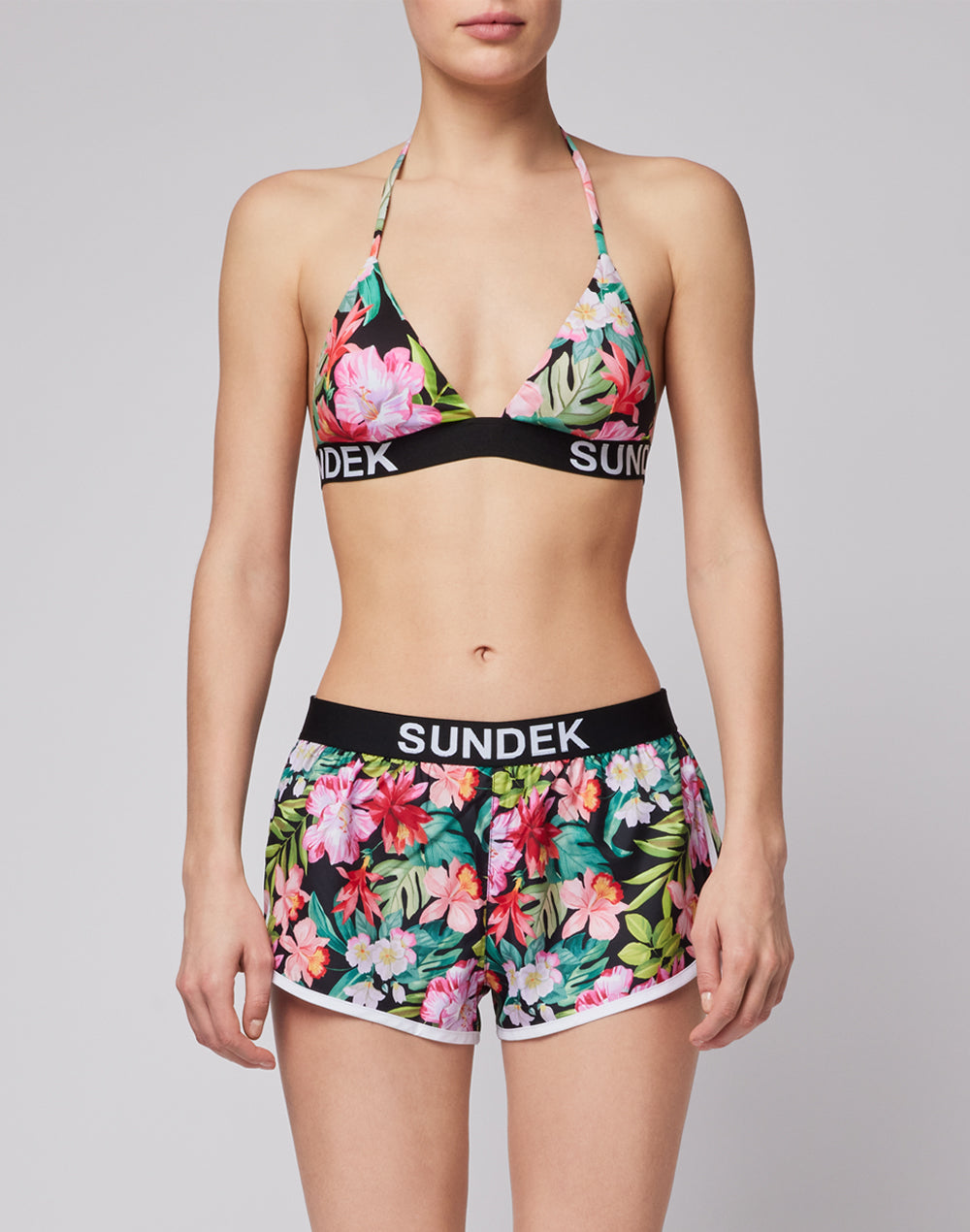 Dai carattere al tuo look per l’estate 2023 con i pantaloncini da mare donna corti a vita elasticata. A fantasia hawaiana con elastico in vita jacquard a contrasto, sono facili da abbinare al tuo costume preferito per rendere perfetta ogni giornata di mare.