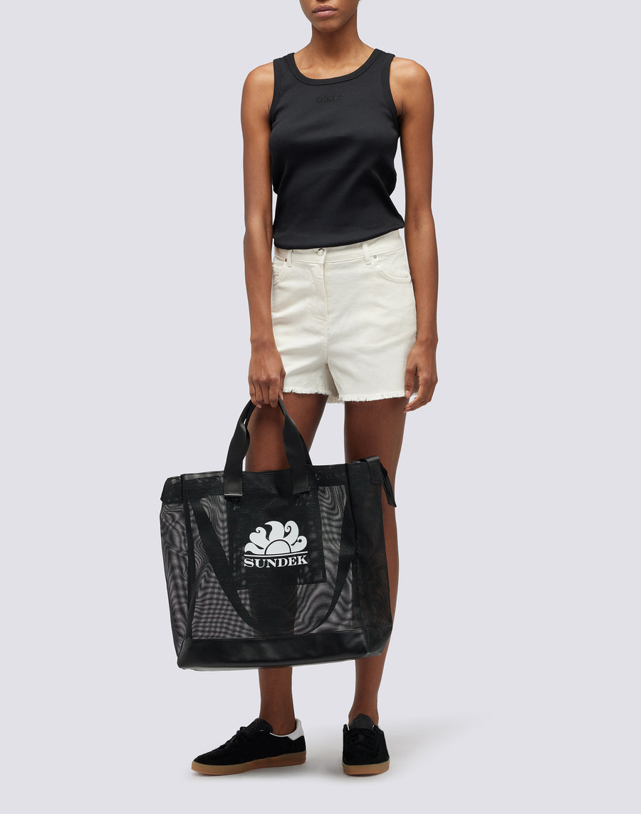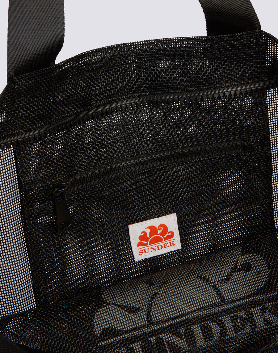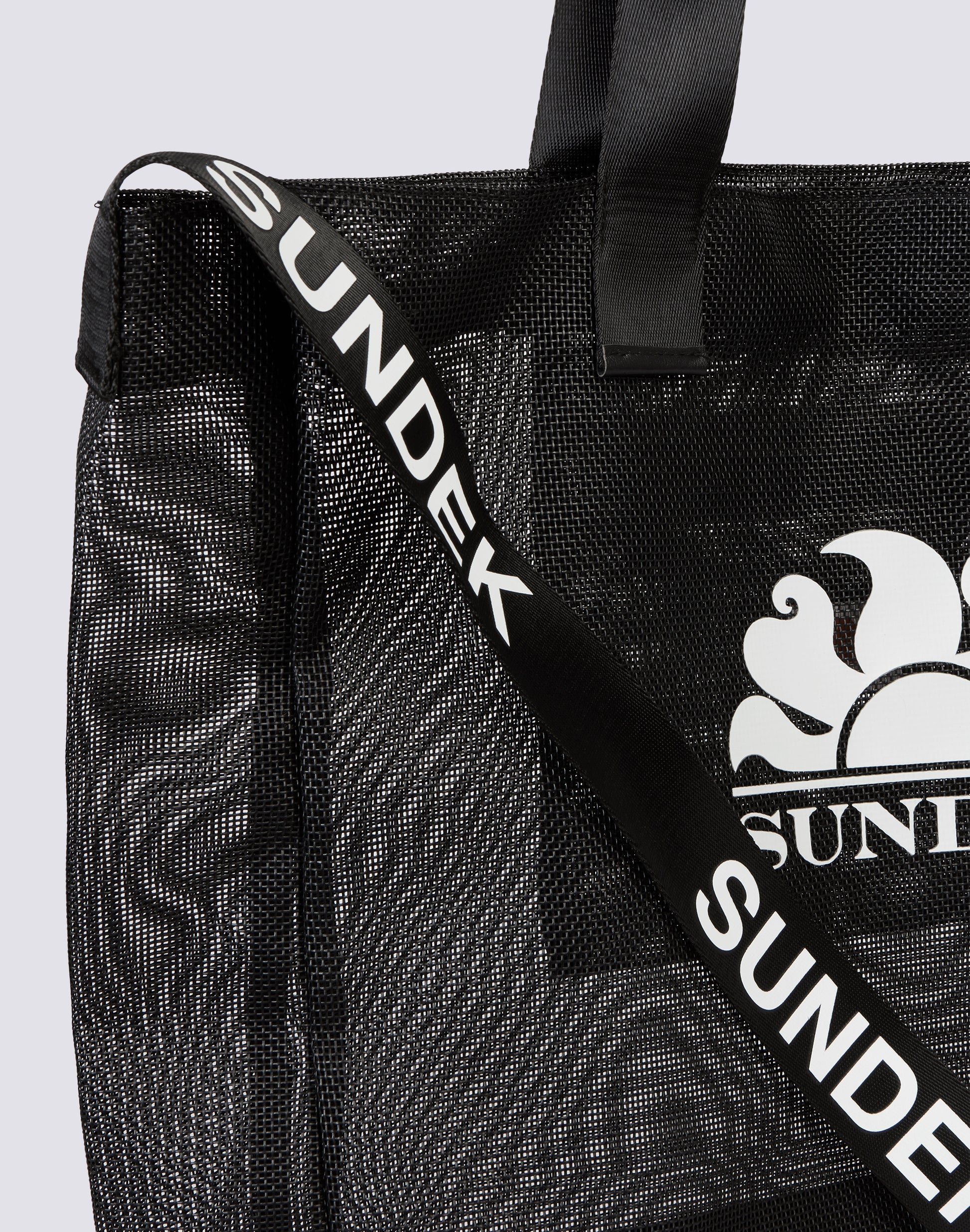 Spacieux, léger et pratique, c'est le sac de plage Sundek en filet avec bandoulière griffée et poche intérieure. Il se ferme par un zip, mais est également équipé de poignées. Parfait pour emporter tout le nécessaire pour une journée à la plage ou au bord de la piscine.