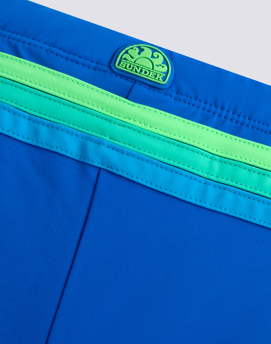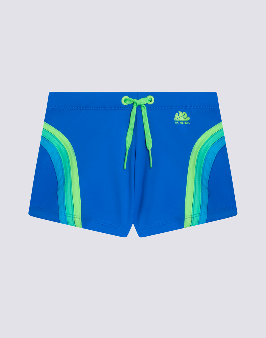 Le short de bain pour enfants qui met entièrement l'accent sur la couleur et n'oublie pas l'environnement, car il est fabriqué en nylon régénéré ECONYL®. Confortable grâce à la taille élastique et à la sangle réglable, c'est le costume que votre enfant pourra facilement porter pour jouer et se baigner.