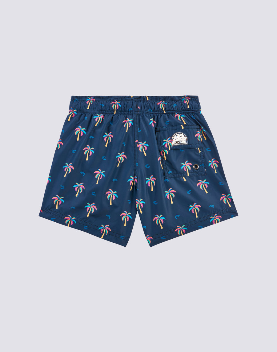 MAILLOT DE BAIN COURT EN POLY LÉGER À TAILLE ÉLASTIQUE IMPRIMÉ MINI PALMIER
