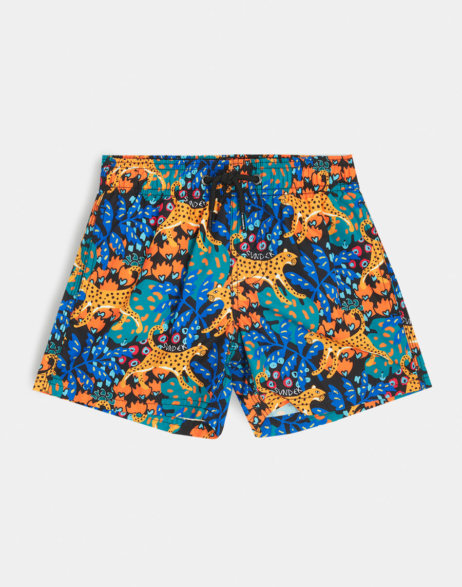 Couleurs intenses et tissu polyester recyclé ultra-confortable pour ce short de bain pour garçons. Un modèle qui accompagnera votre enfant dans ses nombreuses activités en vacances, parfait pour bouger et jouer en toute liberté. Fabriqué avec un imprimé safari, c'est un modèle à emporter année après année.