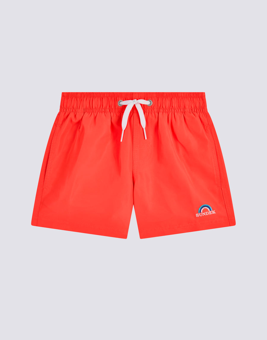 MAILLOT DE BAIN COURT À TAILLE ÉLASTIQUE EN TAFFETAS EMBLÉMATIQUE AVEC BRODERIE ARC-EN-CIEL