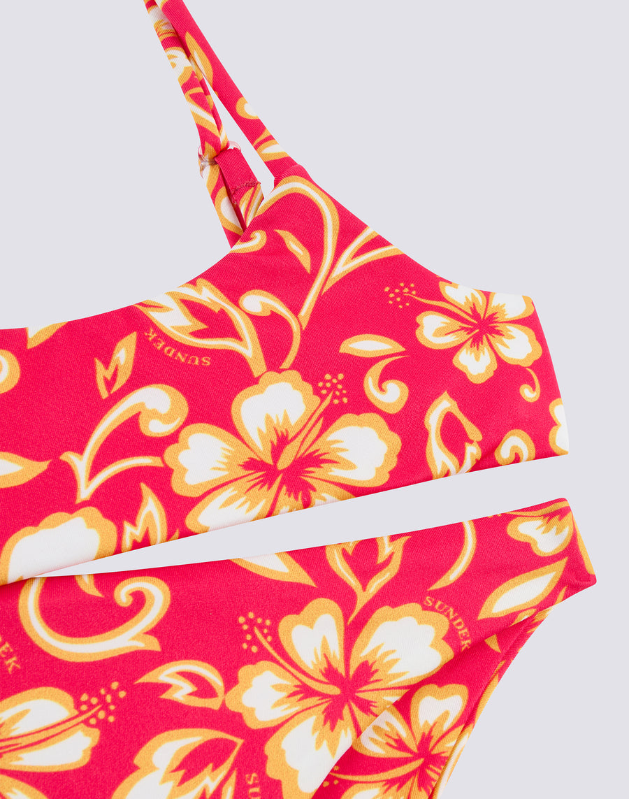 Ajoutez une touche de couleur à votre été avec notre bikini imprimé pour fille SK23. Parfait pour les journées à la plage et pour s'amuser, ce maillot de bain est composé d'un imprimé floral coloré.