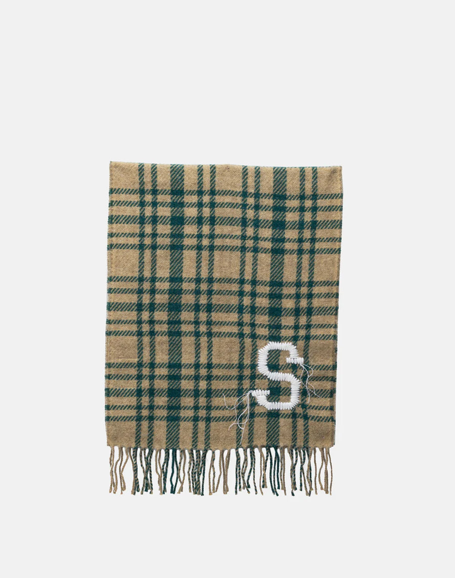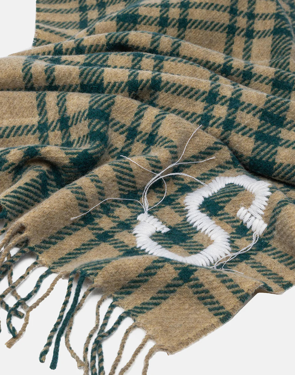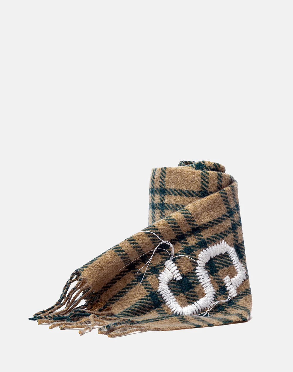 Écharpe à carreaux en feutre avec broderie artisanale en laine