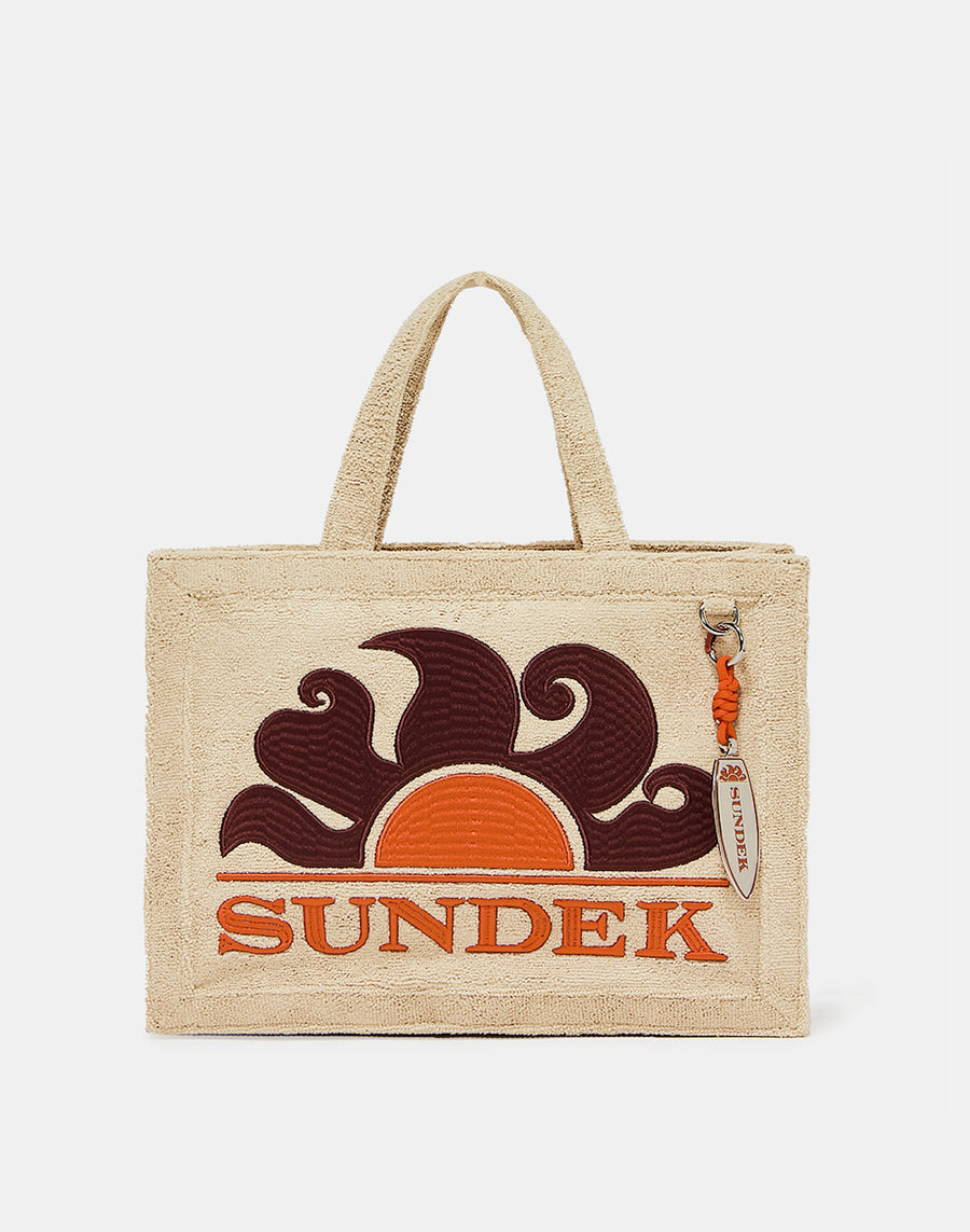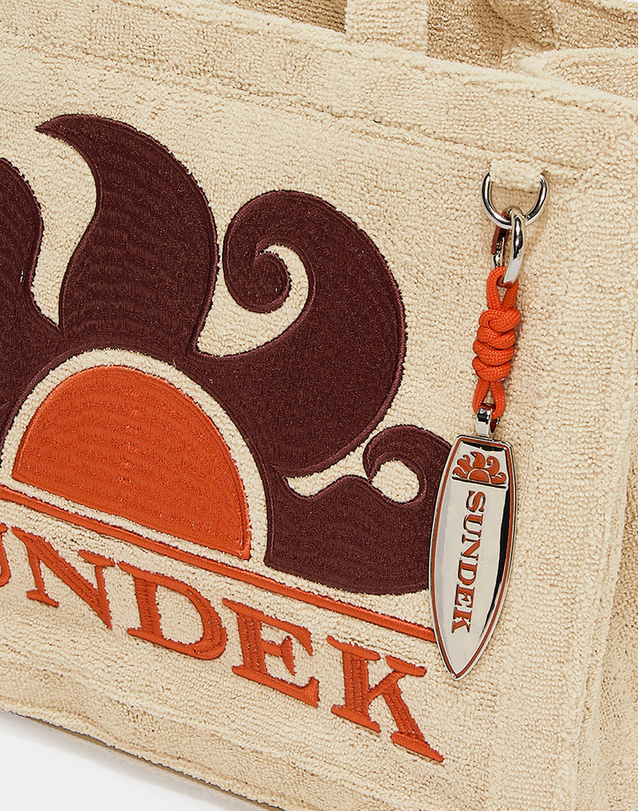Sac à main de taille moyenne en tissu éponge avec logo brodé. Charm avec la forme caractéristique d'une planche de surf.