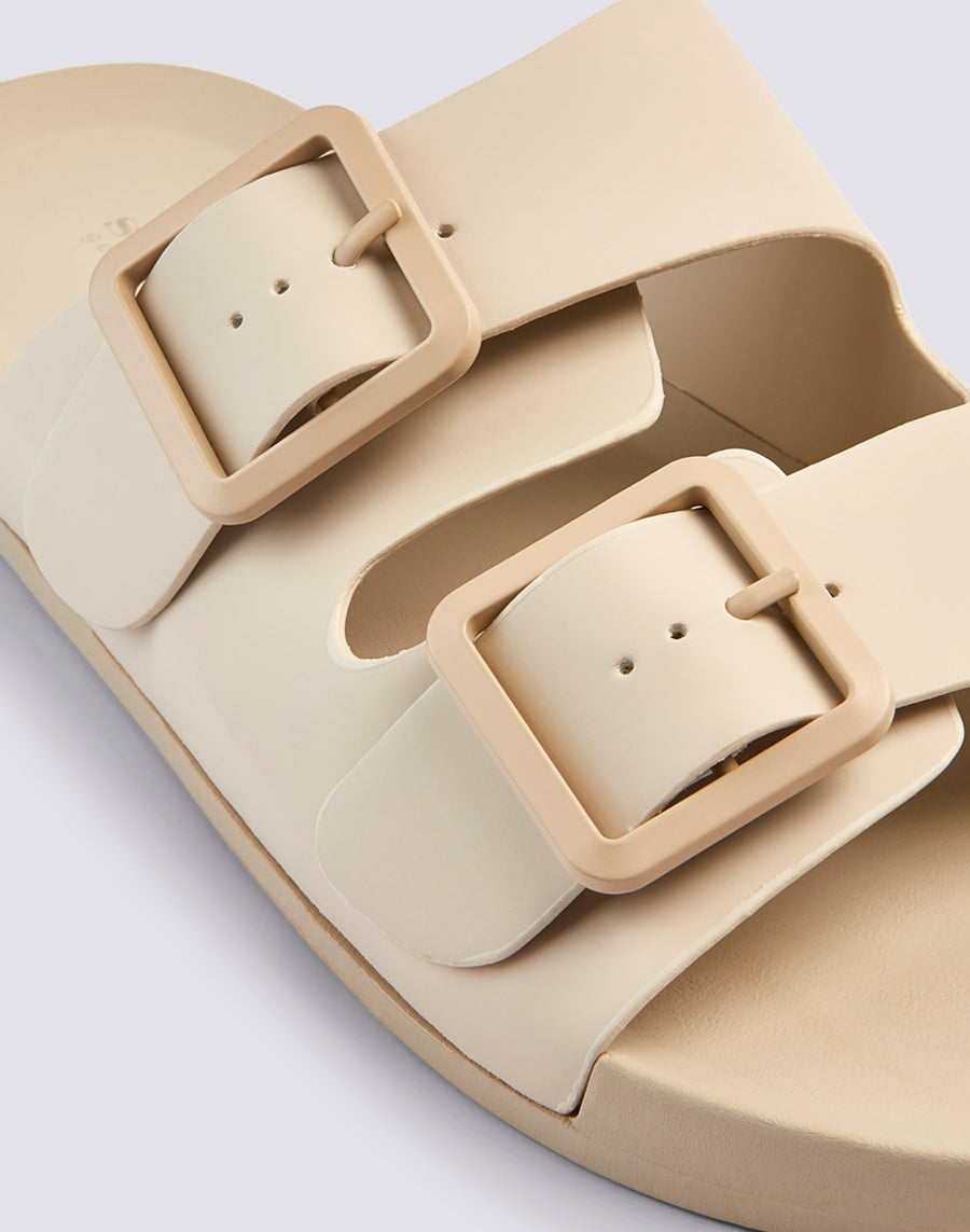 Sandale en caoutchouc avec deux brides réglables. Se combine facilement avec tous les types de looks, c'est le must de tes vacances.