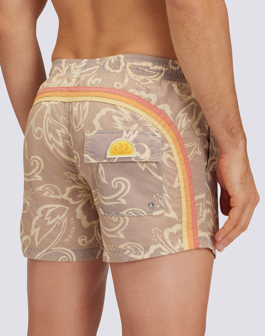 MAILLOT DE BAIN COURT TAILLE ÉLASTIQUE TAFFETA ICONIQUE GOLDENWAVE AVEC IMPRESSION SK23