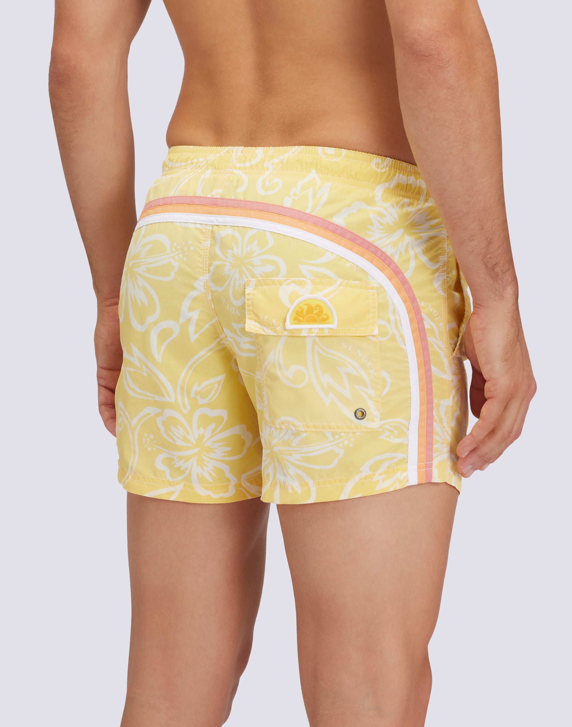 MAILLOT DE BAIN COURT TAILLE ÉLASTIQUE TAFFETA ICONIQUE GOLDENWAVE AVEC IMPRESSION SK23