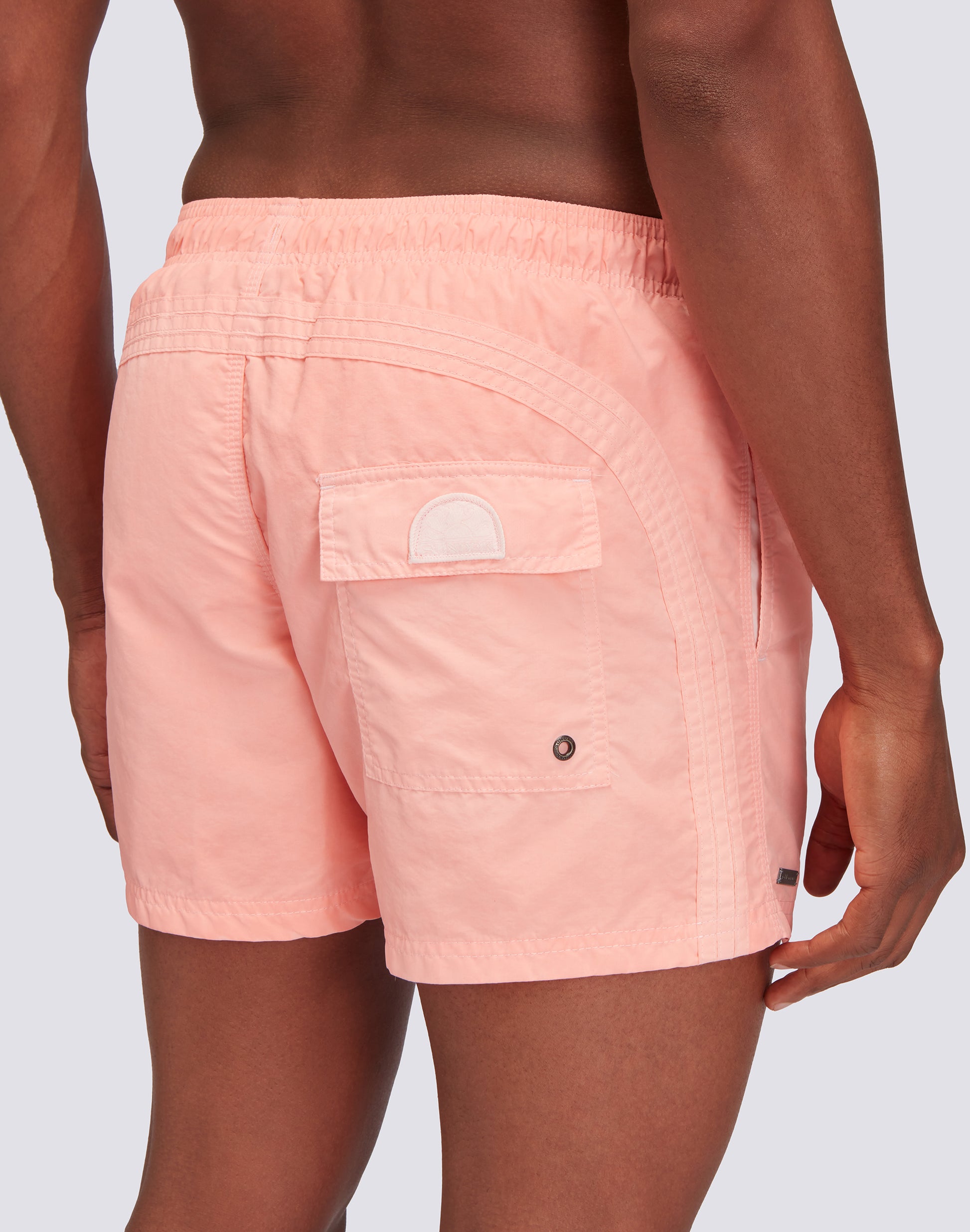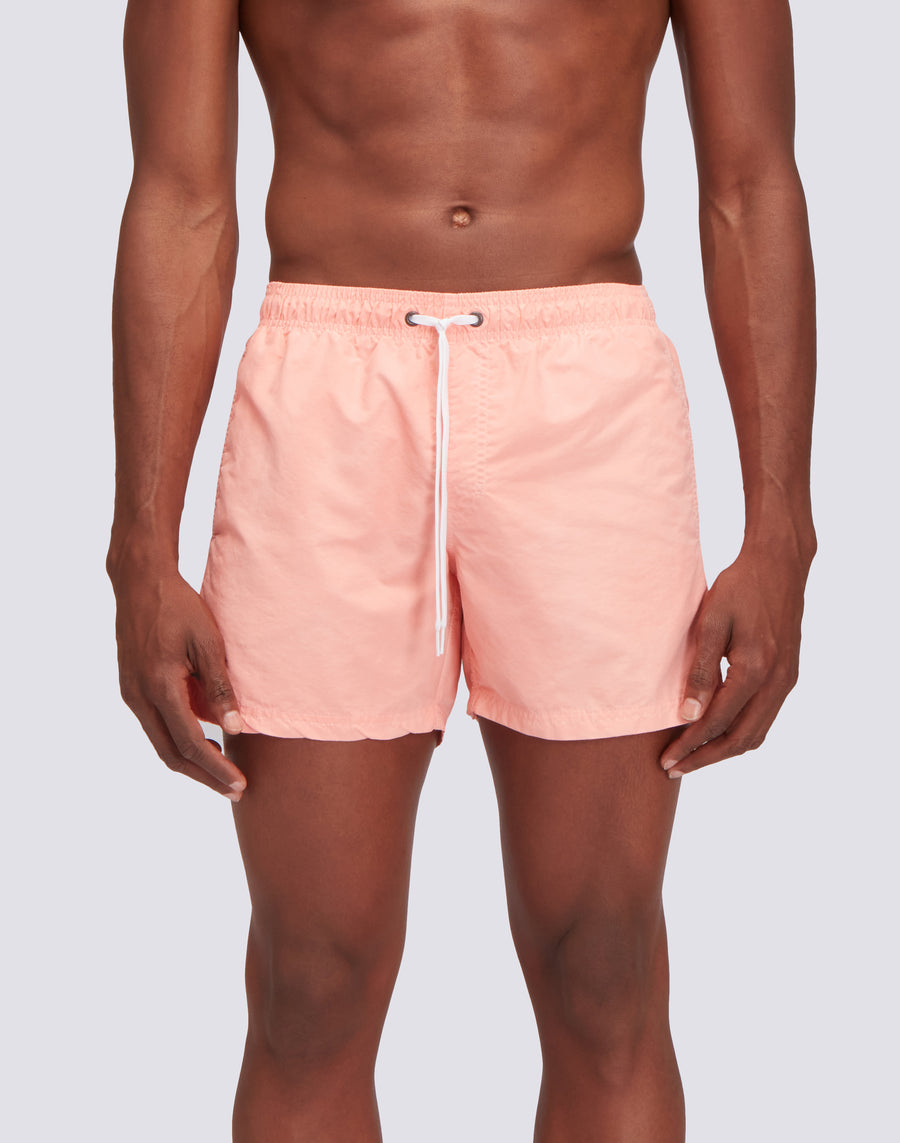 Préparez-vous à surfer sur la prochaine vague avec le maillot de bain court à taille élastiquée de Goldenwave, traité et teinté selon des techniques artisanales. Le tissu historique en taffetas de nylon et la construction du modèle lui permettent de sécher rapidement et d'être très résistant, saison après saison. Le traitement spécial confère à chaque vêtement une extrême originalité.