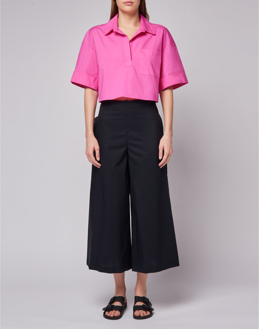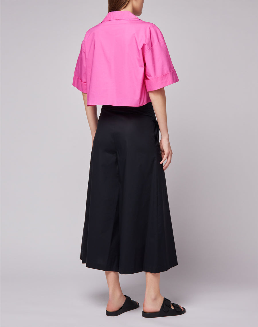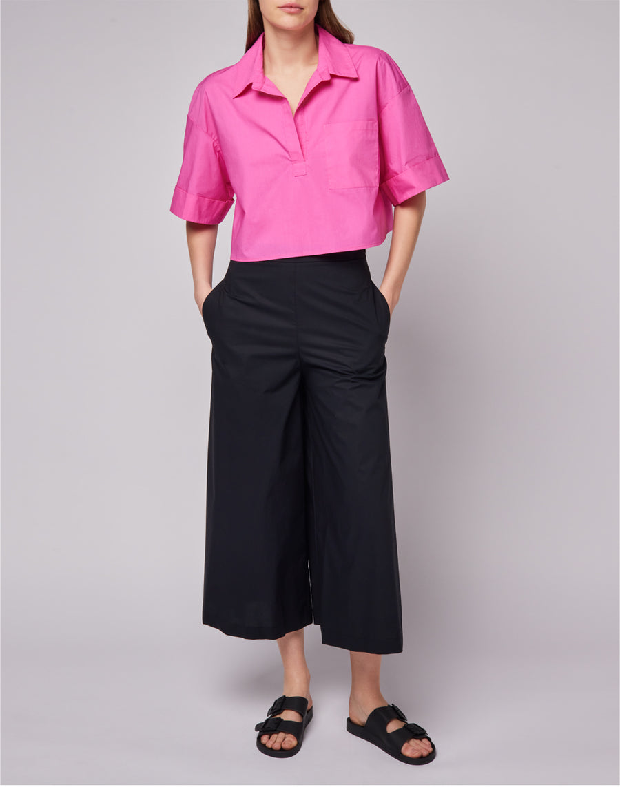 Chemise à manches courtes en popeline avec poche avant et large ouverture. Idéale sur une jupe, un pantalon ou un short.