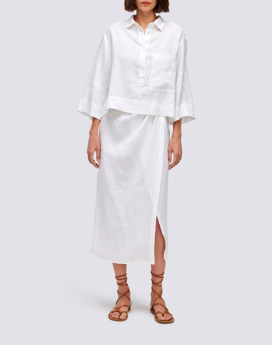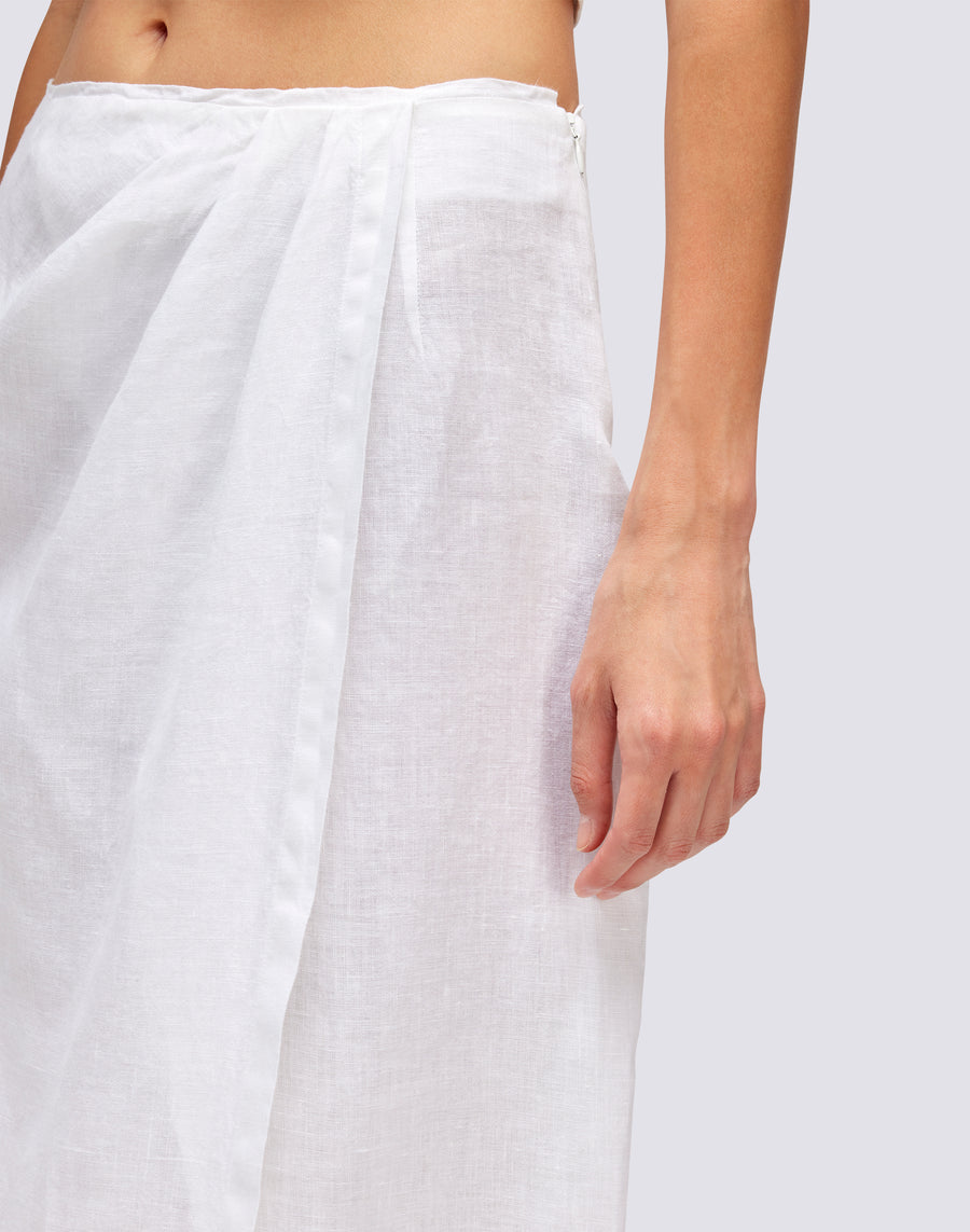 Cette jupe longue en lin est le choix parfait pour un style polyvalent et élégant. Grâce à sa coupe paréo, il s'adapte parfaitement à tous les looks de plage et hors plage.