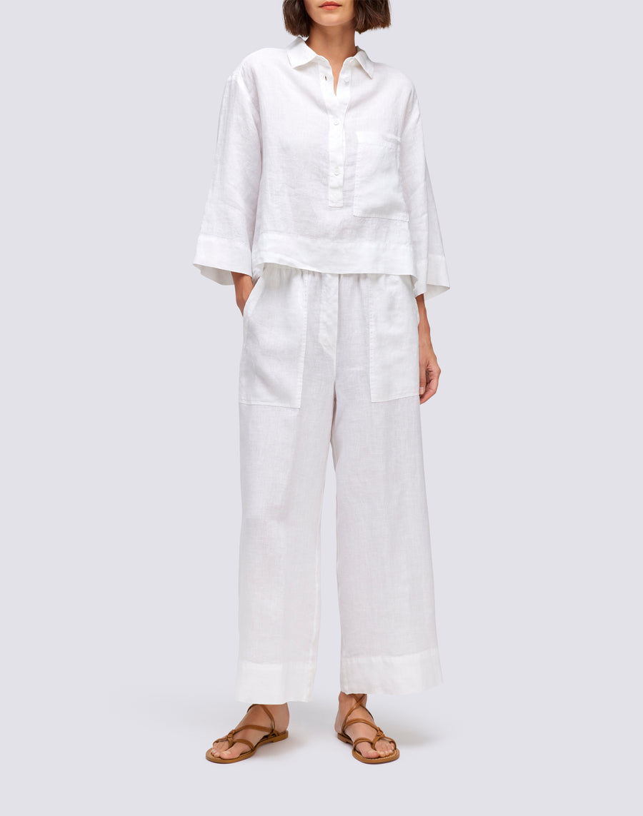 CHEMISE COURTE EN LIN AVEC MAXI POCHE