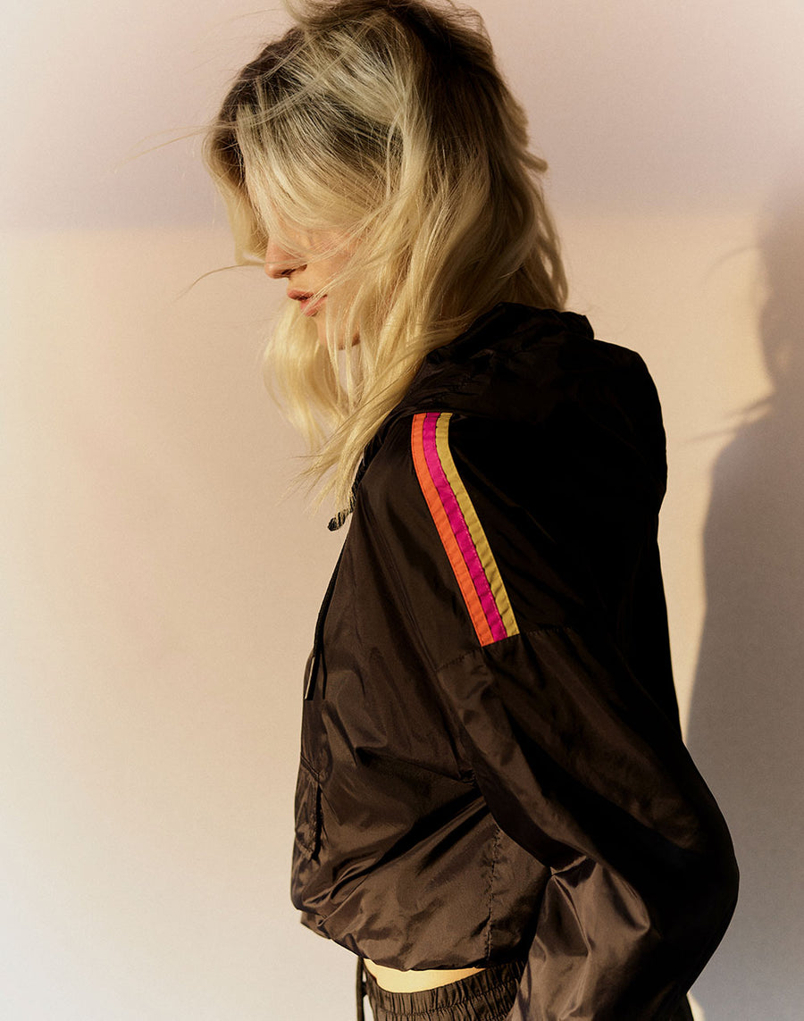 Ne manquez pas cette veste femme décontractée en triacétate, qui vous accompagnera avec un esprit sport-chic du matin au soir. Les manches sont personnalisées avec l'emblématique arc-en-ciel Sundek.