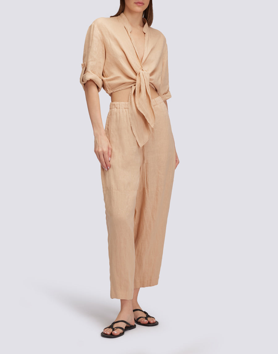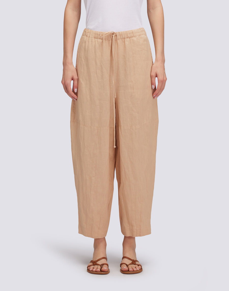 PANTALON LONG EN LIN AVEC CEINTURE ÉLASTIQUE RÉGLABLE