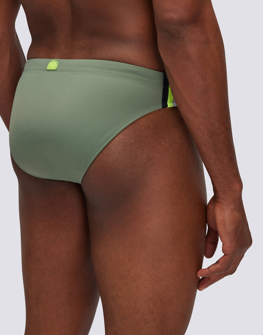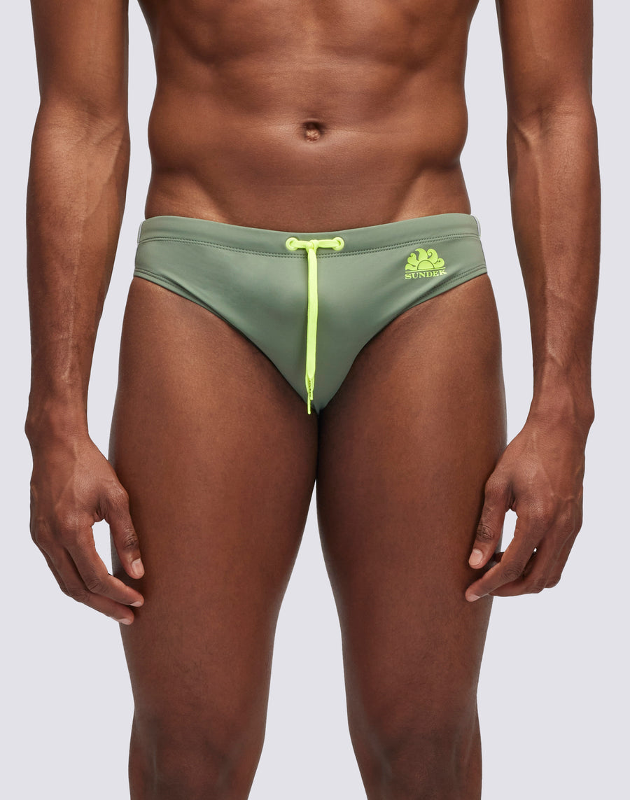 Slip pour homme de couleur unie avec ceinture réglable. Le slip de bain de couleur unie avec cordon de serrage et trois bandes latérales de couleur contrastante pour un look audacieux et fonctionnel. Il sèche rapidement et vous apporte confort et durabilité dans et hors de l'eau : portez-le pour la natation et l'entraînement ainsi que pour le repos et les bains de soleil.