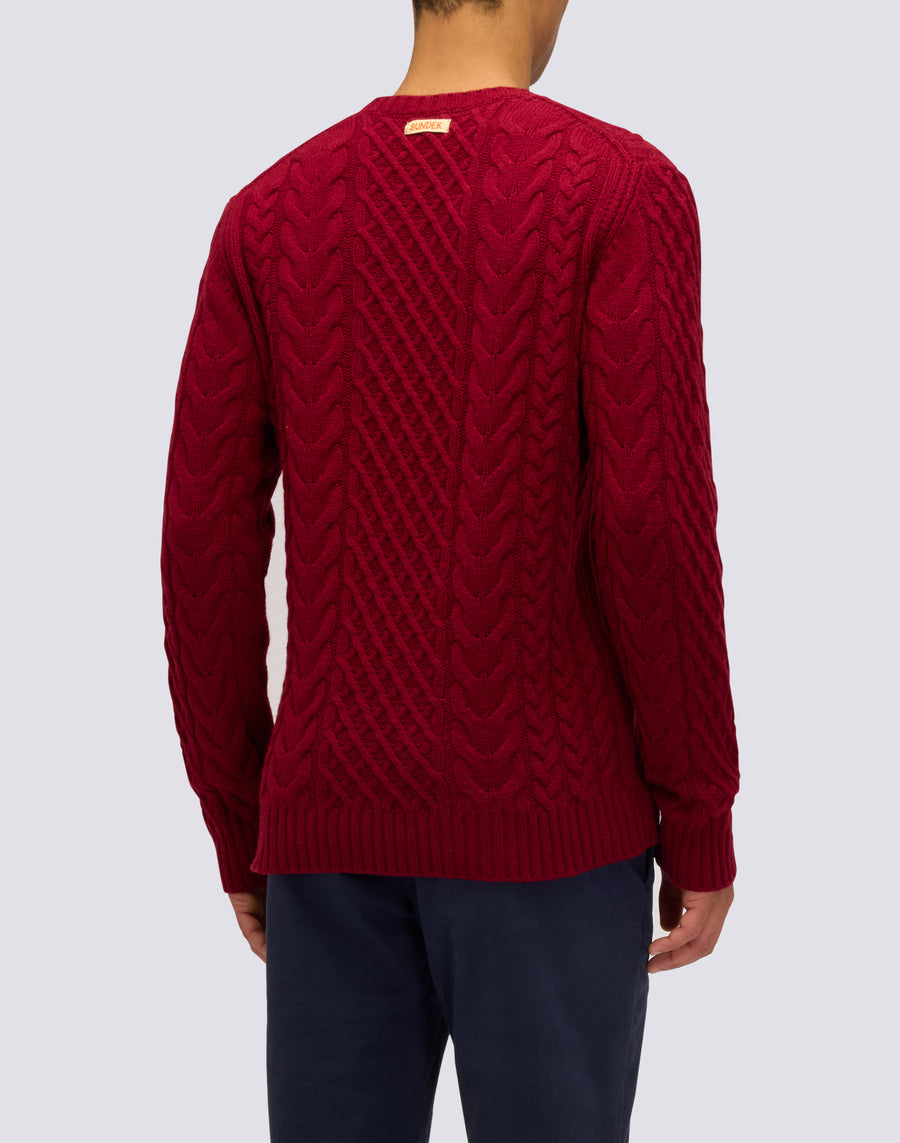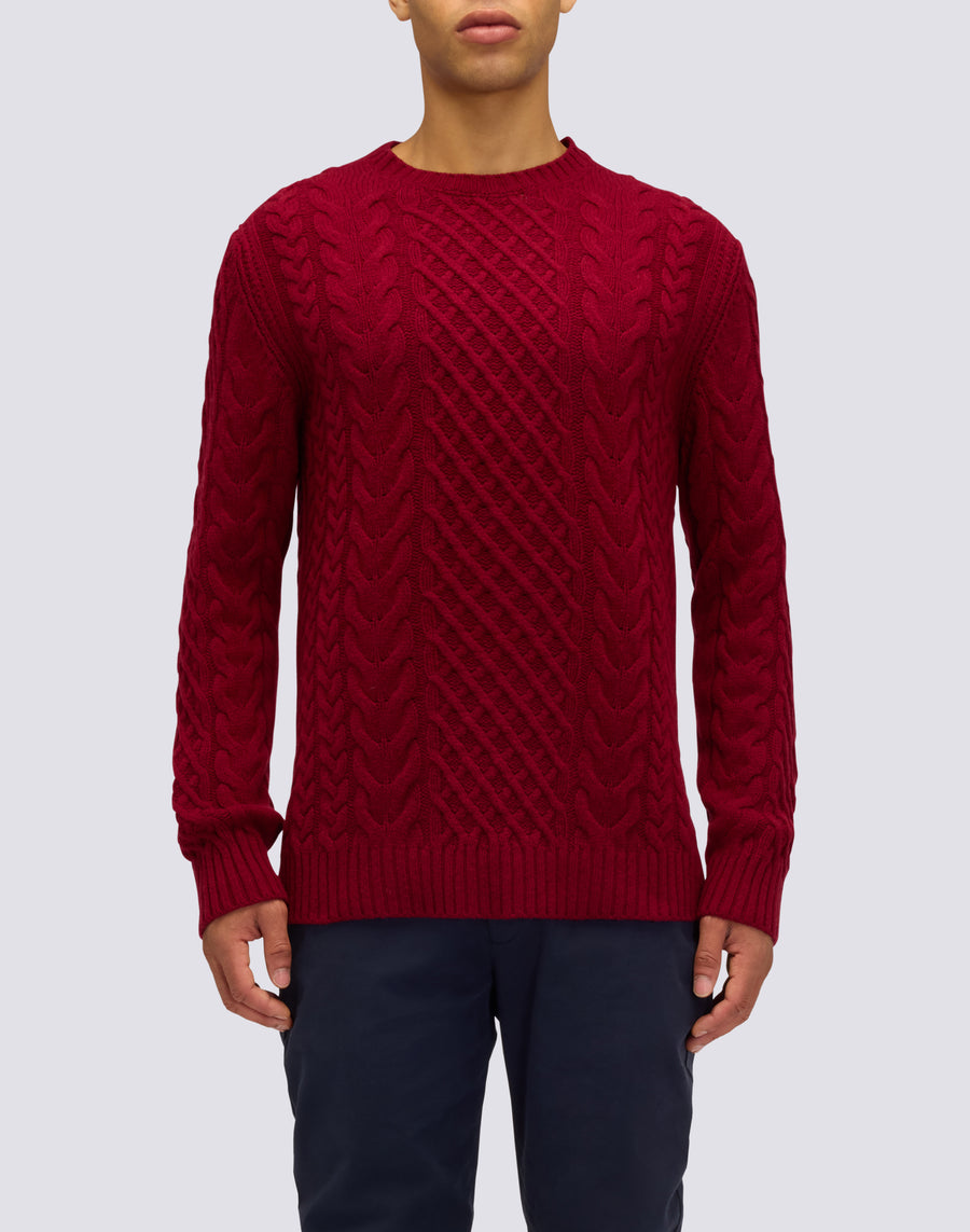 PULL HOMME À COL RAS DU COU AVEC TORSADES EN LAINE MÉRINOS ET CACHEMIRE