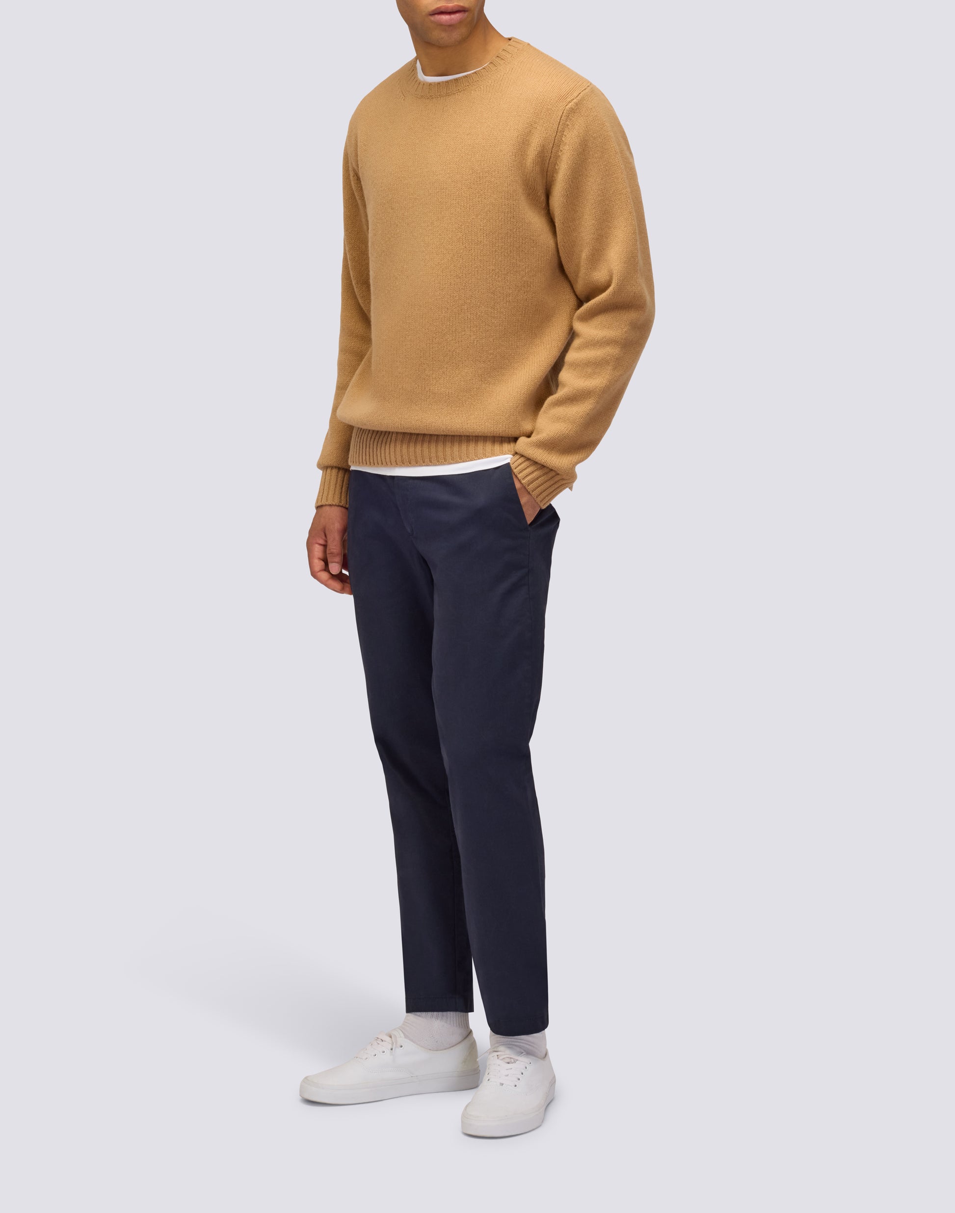 Pull ras du cou pour homme en mélange de cachemire, idéal pour créer des tenues aussi bien plus informelles que plus élaborées.