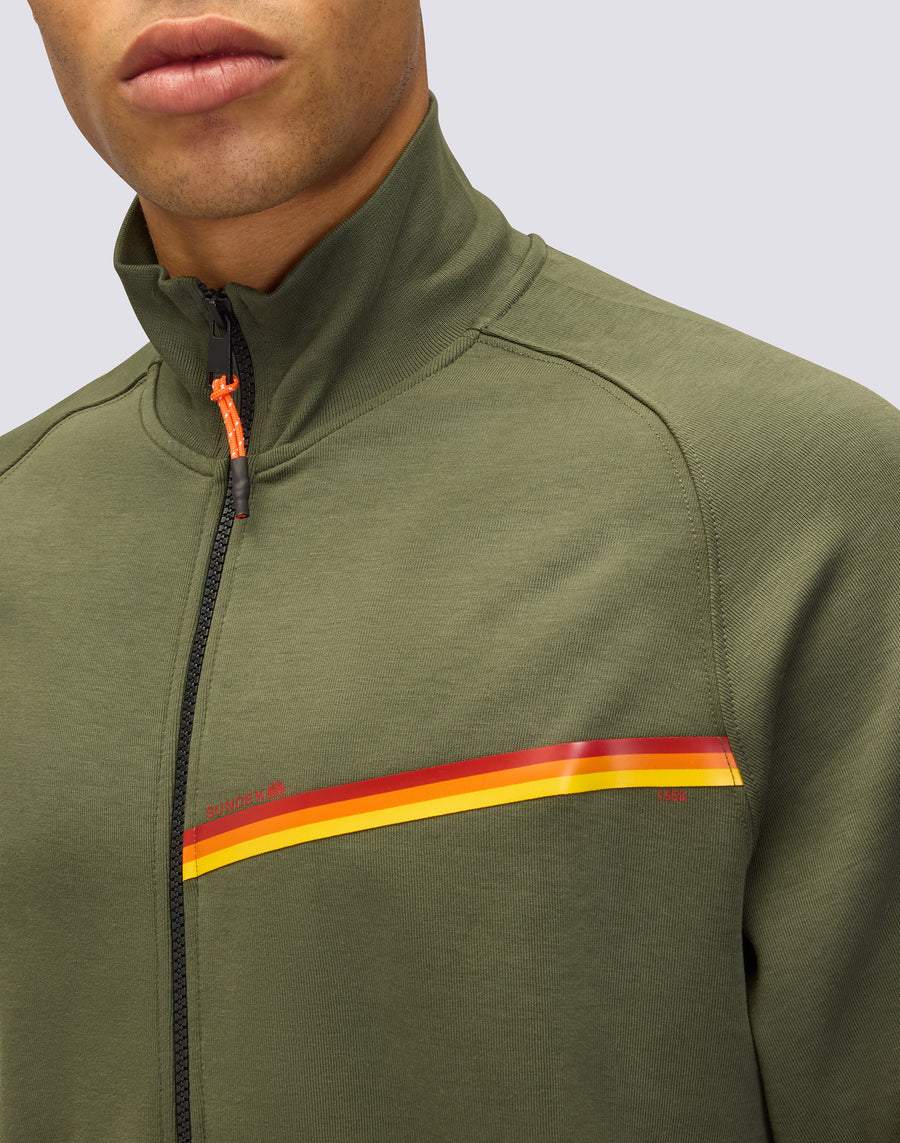 Sweat-shirt zippé pour homme en coton Interlock recyclé. Le détail arc-en-ciel d'archive imprimé sur le côté avant crée un contraste et constitue une touche agréable pour un vêtement simple, sportif et décontracté.