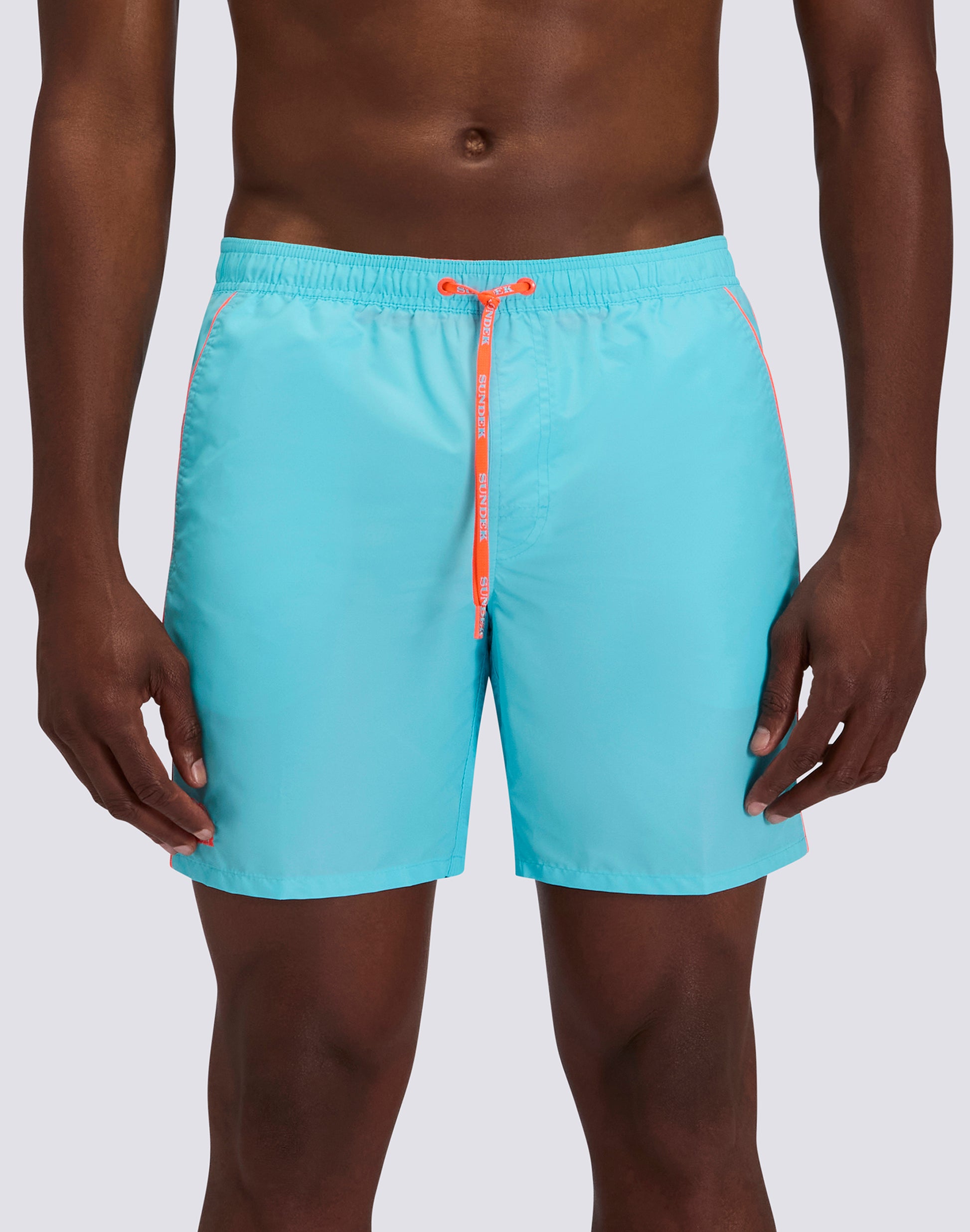 Il costume da bagno uomo M420BDTA100 unisce lo stile classico Sundek a un dettaglio distintivo: il piping a contrasto che impreziosisce il design. Questo boardshort di lunghezza media con vita elasticata offre comfort e un look distintivo.
