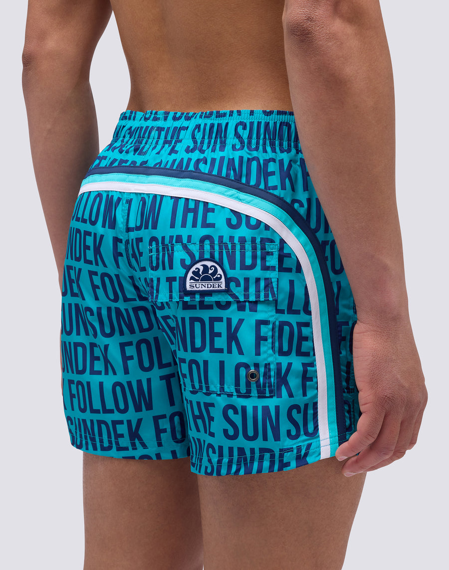 MAILLOT DE BAIN COURT AVEC TAILLE ÉLASTIQUE ET IMPRIMÉ ÉCRITURES PAYOFF