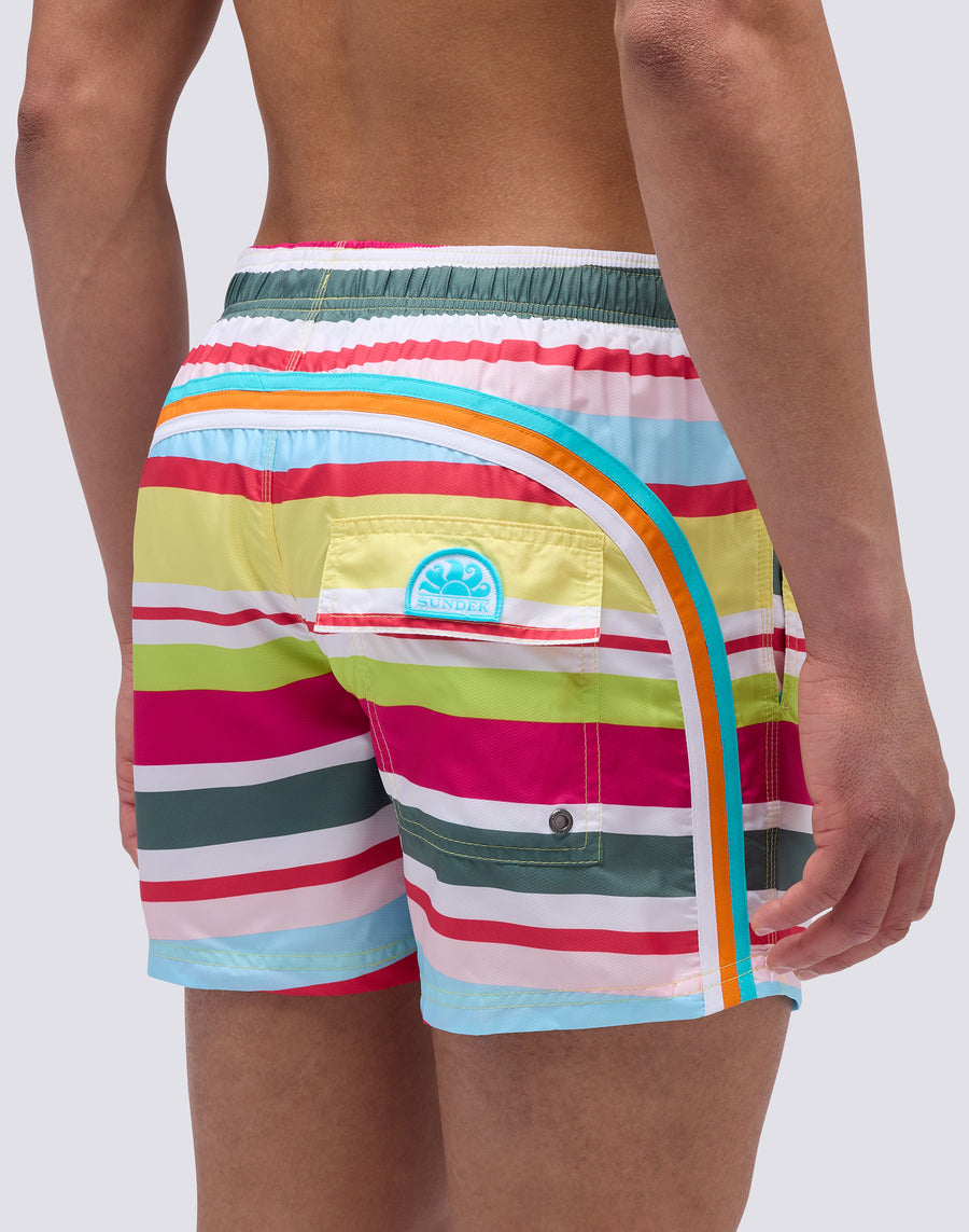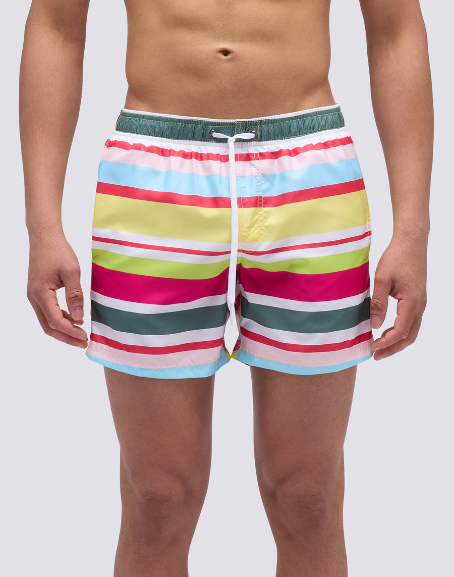 MAILLOT DE BAIN COURT À TAILLE ÉLASTIQUE ET IMPRIMÉ MULTI-RAYURES