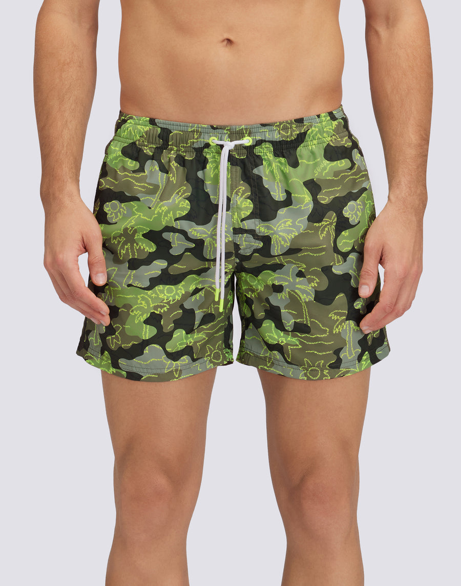 MAILLOT DE BAIN COURT À TAILLE ÉLASTIQUÉE REPREVE® AVEC IMPRESSION INSIDE PALM