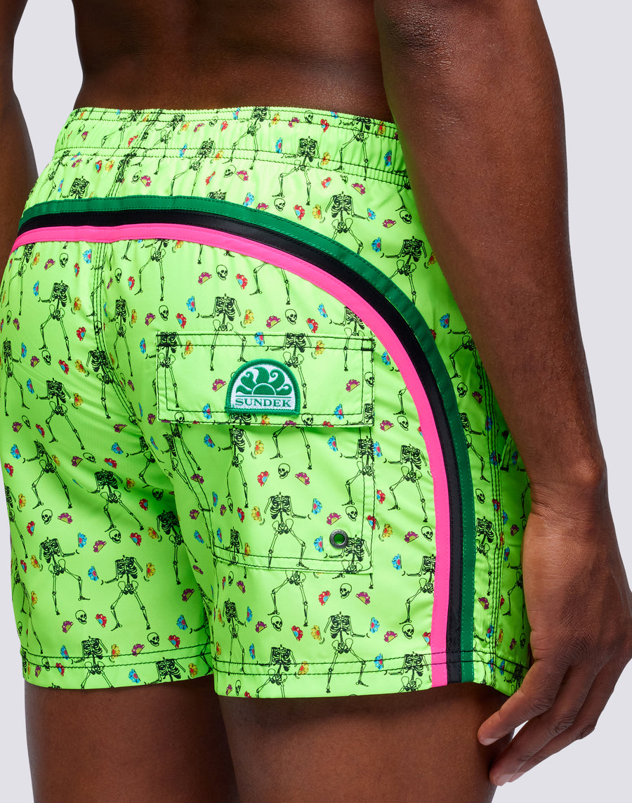 SHORT DE BAIN COURT TAILLE ÉLASTIQUÉE MICROIMPRIMÉ SKELETON BAY REPREVE®