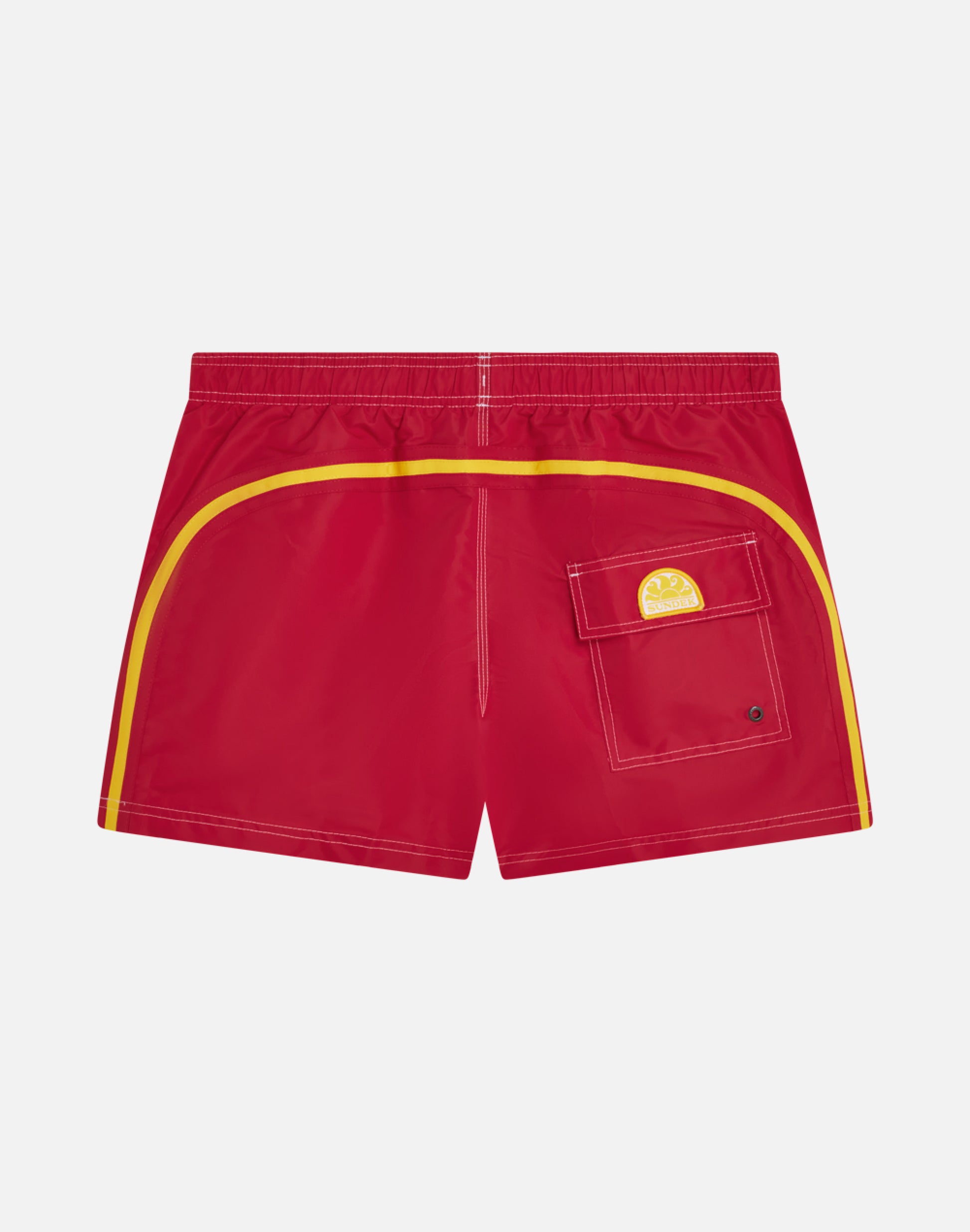 MAILLOT DE BAIN COURT TAILLE ÉLASTIQUÉE TAFFETAS ICONIQUE DRAPEAU DE L'ESPAGNE