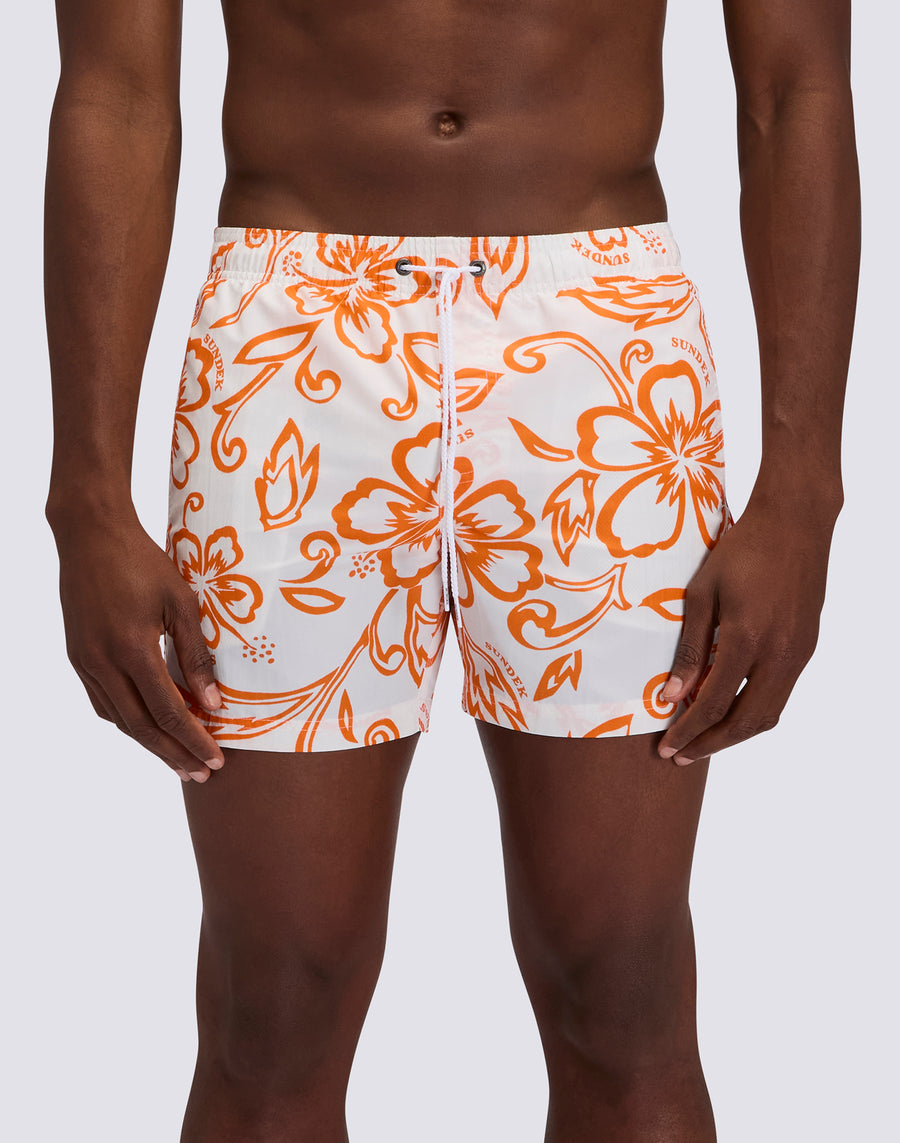 MAILLOT DE BAIN COURT POUR HOMME AVEC TAILLE ÉLASTIQUE ET IMPRIMÉ HIBISCUS D'ARCHIVES SK23