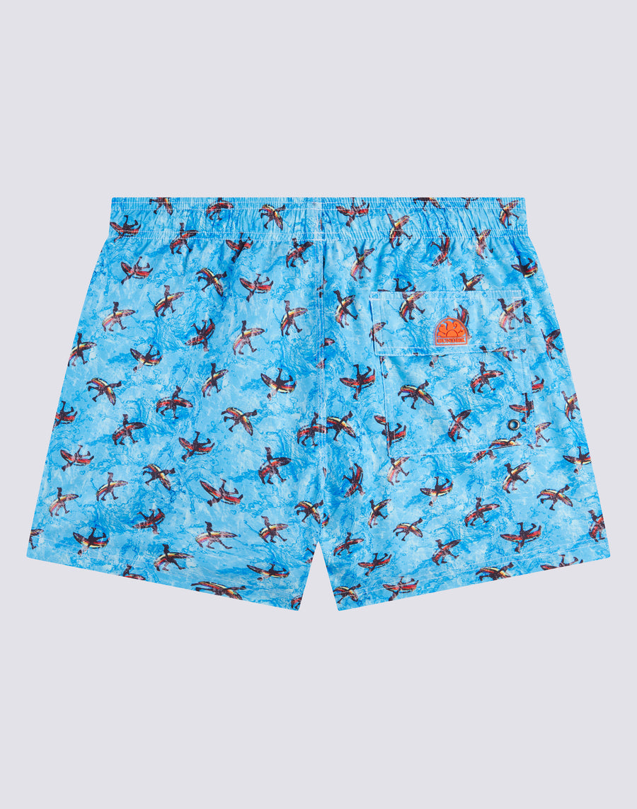 Short de bain avec cordon de serrage élastique à la taille, en polyester recyclé léger. Imprimé Banana Surf. Longueur de la couture extérieure 35 cm (taille m).