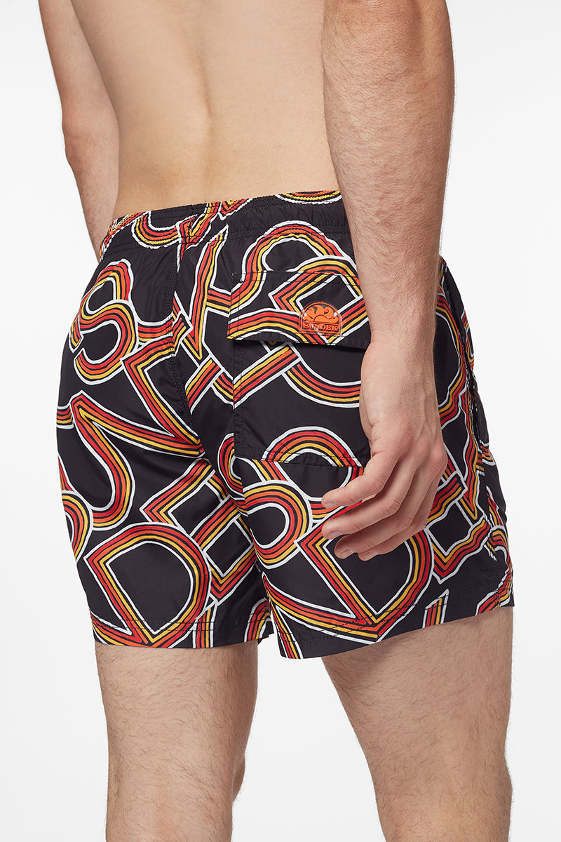SHORT DE BAIN COURT À TAILLE ÉLASTIQUE IMPRIMÉ PAYOFF