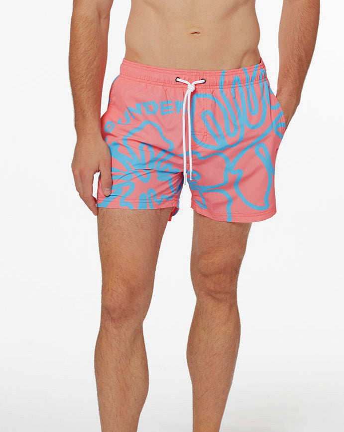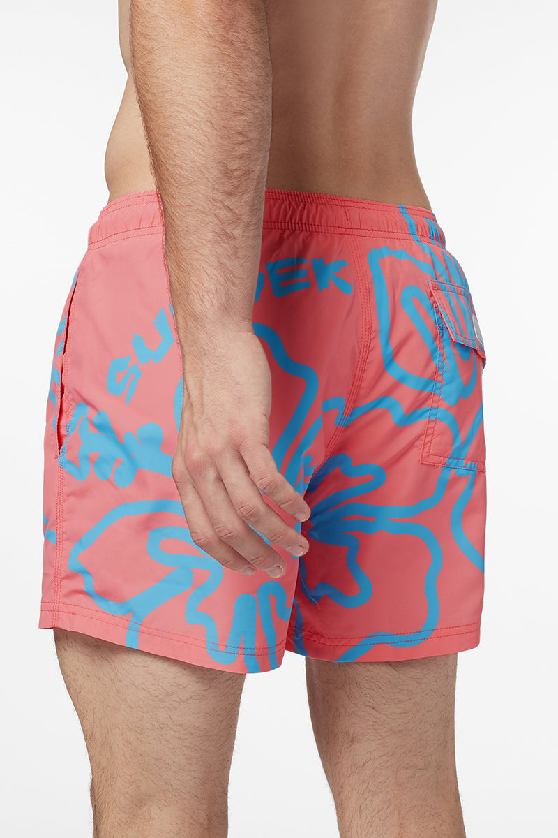 SHORT DE BAIN COURT À TAILLE ÉLASTIQUE AVEC IMPRIMÉ HIBY HANDSKETCHING