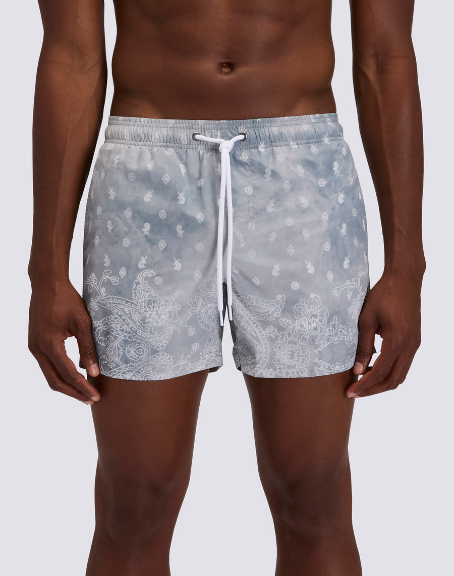 MAILLOT DE BAIN SHORT HOMME AVEC TAILLE ÉLASTIQUÉE IMPRIMÉ BANDANA PAISLEY EN POLYESTER RECYCLÉ