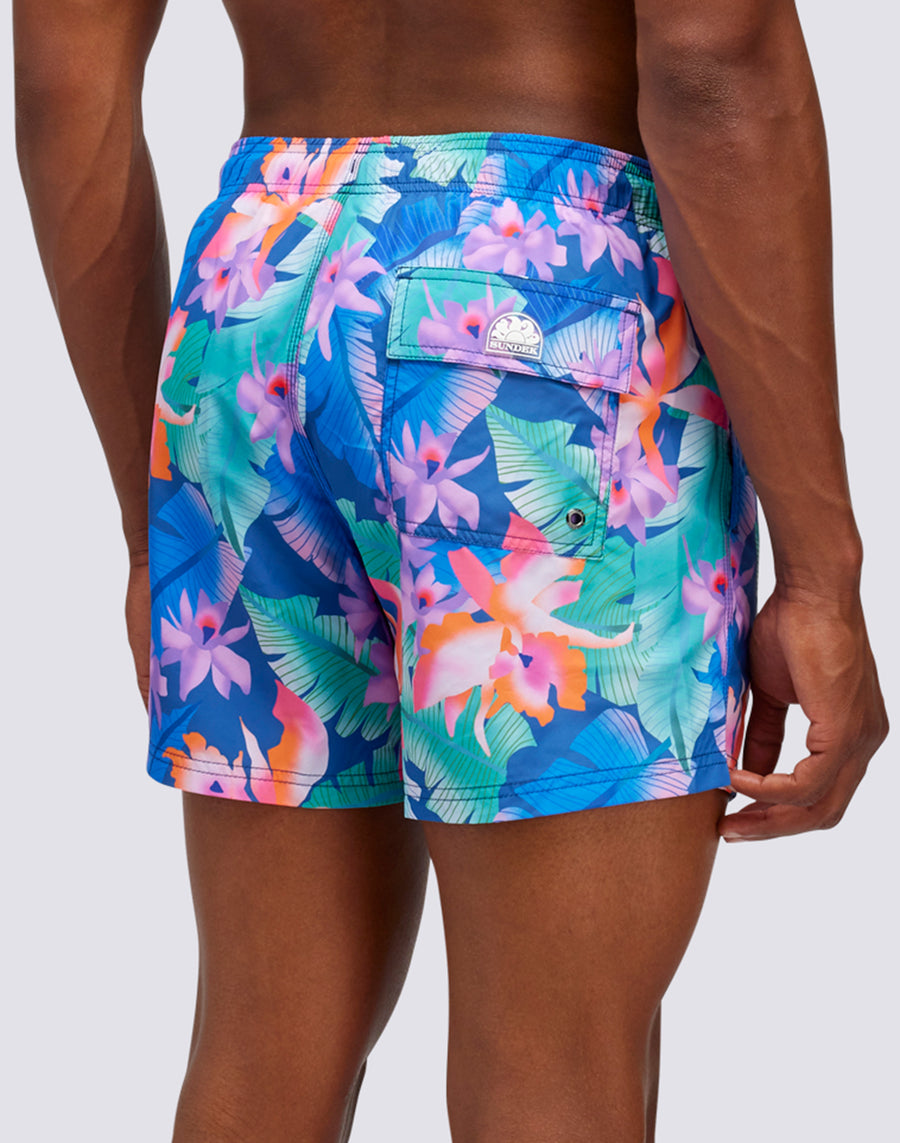 SHORT DE BAIN COURT À TAILLE ÉLASTIQUE À IMPRIMÉ ORCHIDÉE PARTY EN POLY RECYCLÉ