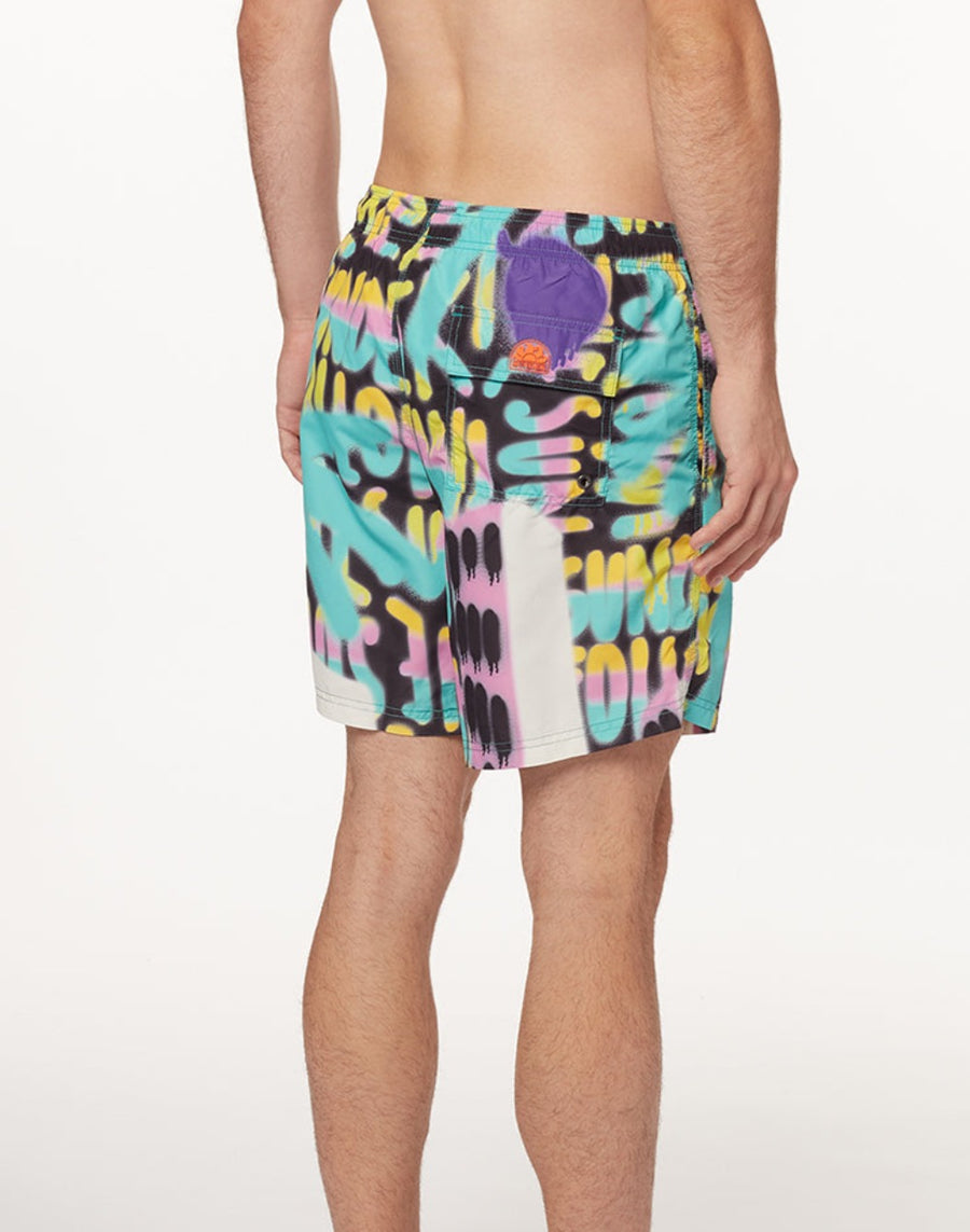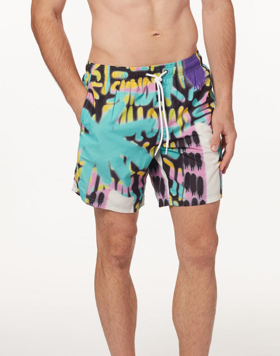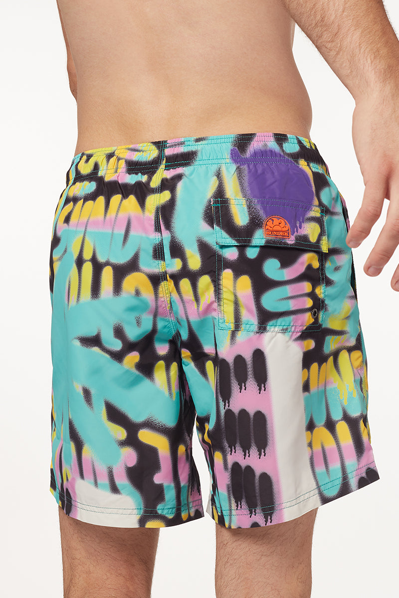 SHORT DE BAIN TAILLE ÉLASTIQUE MOYENNE AVEC IMPRIMÉ SPRAY PALM
