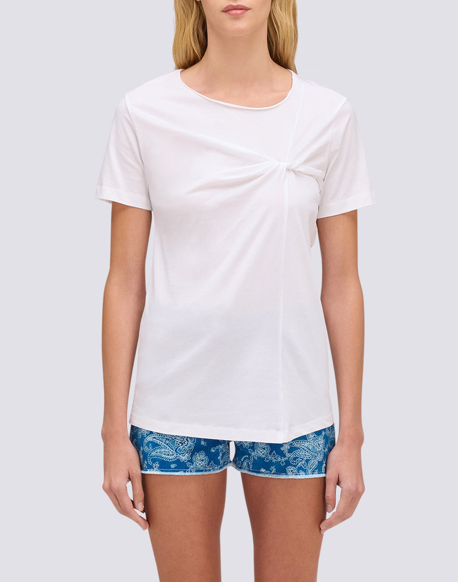 T-SHIRT FEMME À COL LARGE ET NOEUD SUR LE DEVANT