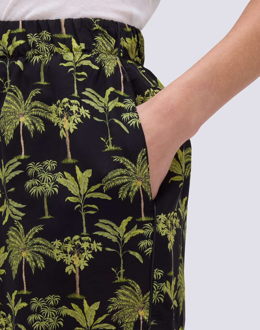 Short femme à taille élastiquée à motif botanique, avec passepoil sur les côtés, réalisé dans une viscose légère et fraîche. Détails sauvages, confort de la taille élastiquée pour un vêtement incontournable de votre garde-robe printemps-été.
