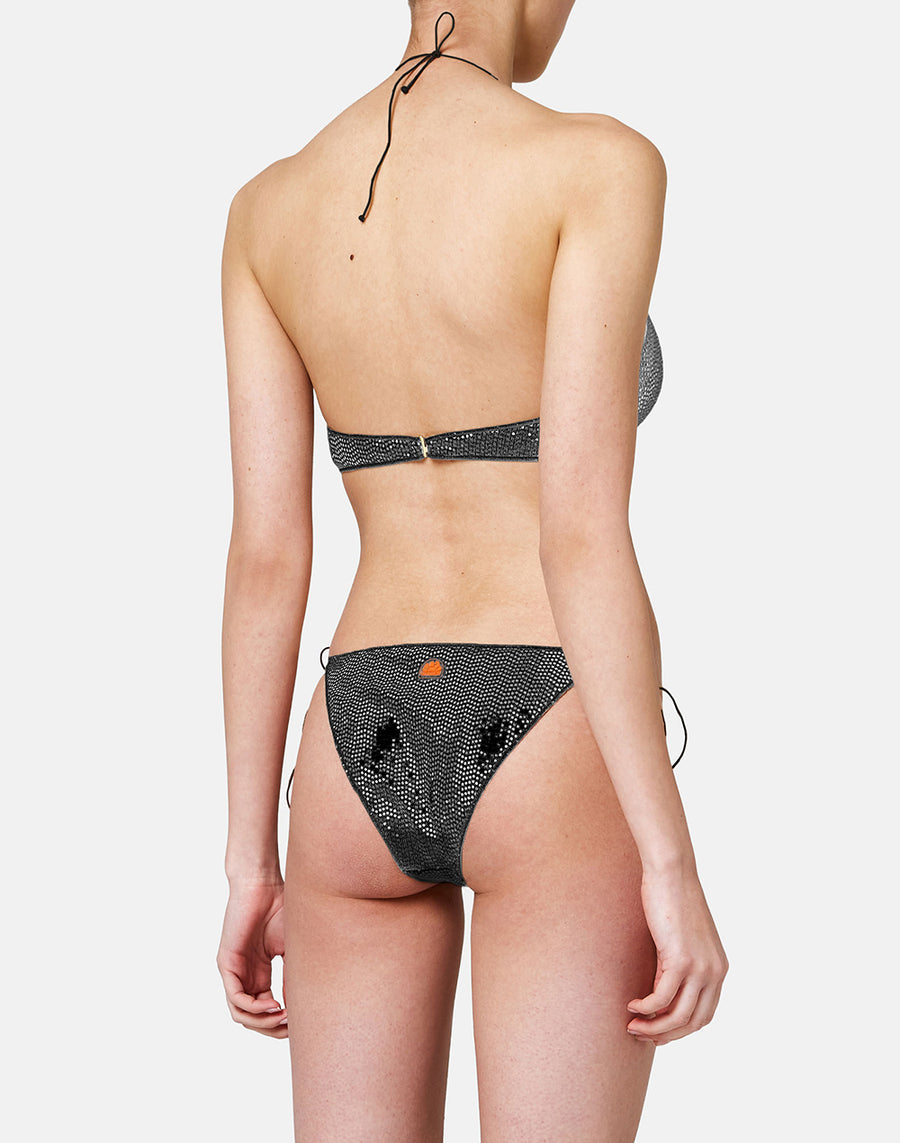 90% POLYAMIDE 5% MELLIQUE 5% ÉLASTHANNE Tissu stretch qui garantit un contact doux avec la peau. Bonnets bordés de sequins.