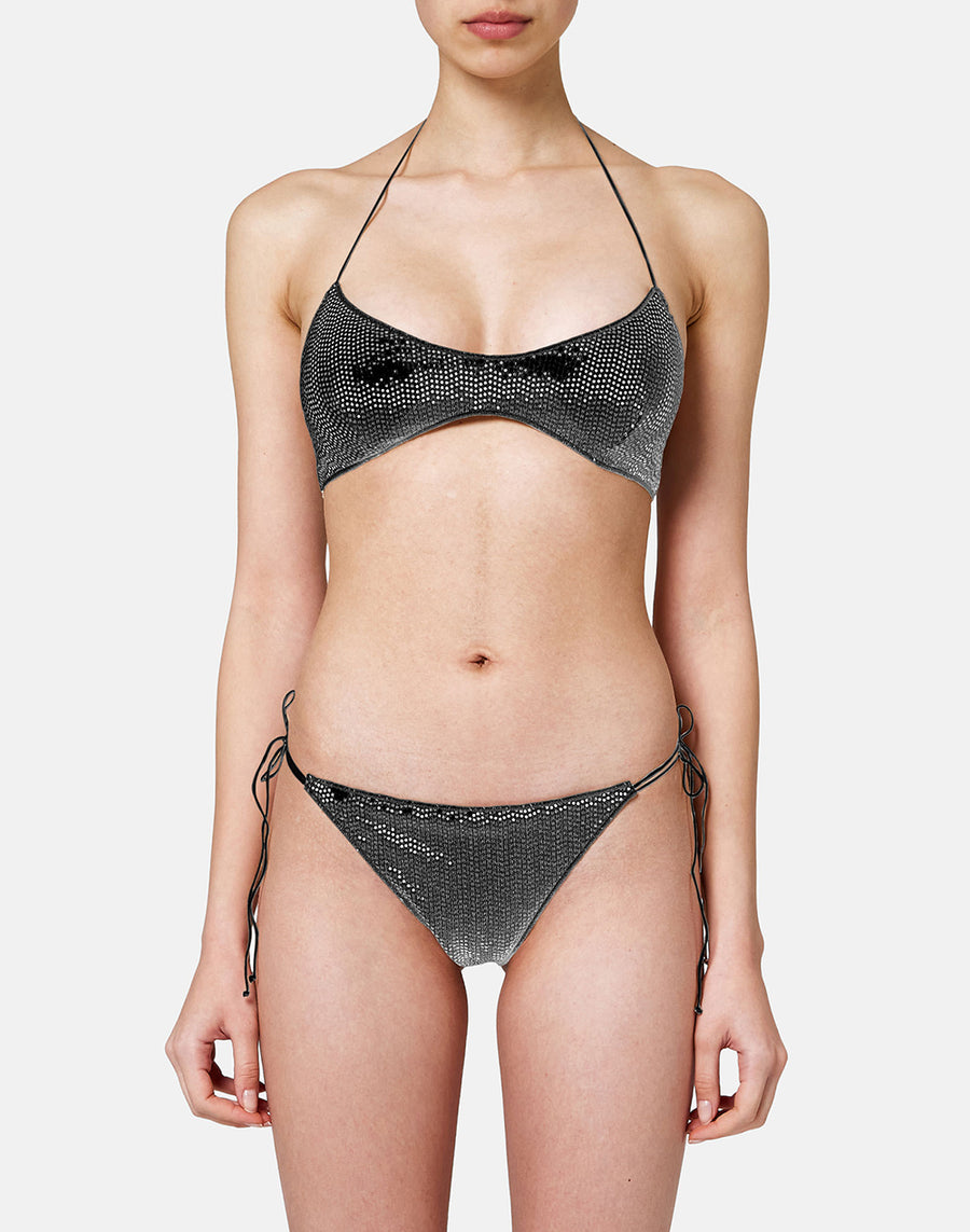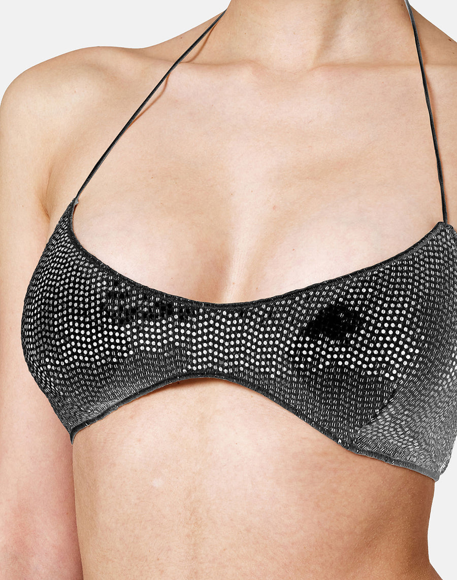 Choisis le style de ce haut brassière à sequins brillants pour un look beachwear au caractère déterminé, ou à porter même le soir sous une blouse, une robe ou un débardeur pour être dévoilé par transparence.
